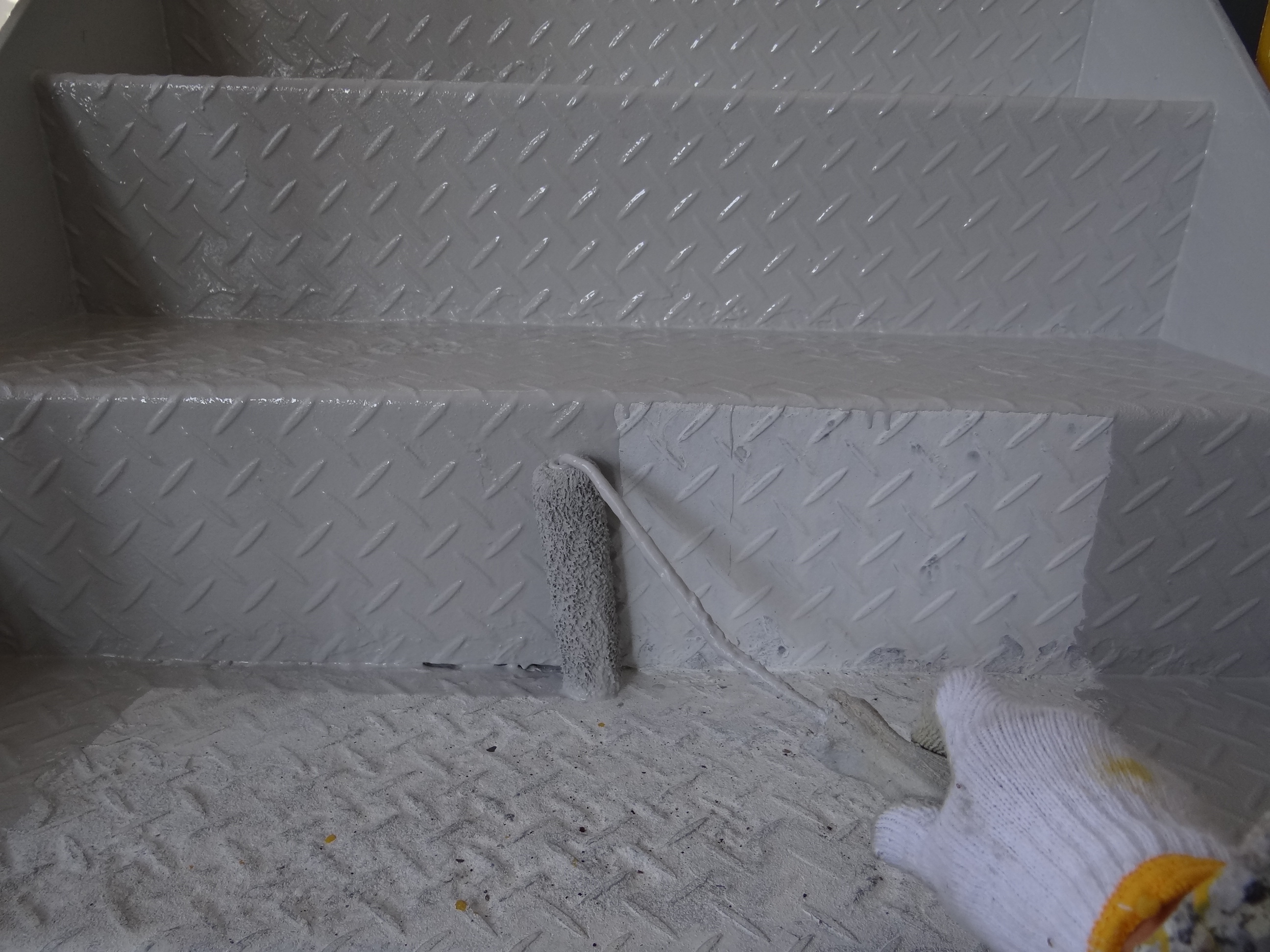 今日も外部階段の鉄部塗装工事を進めておりました。