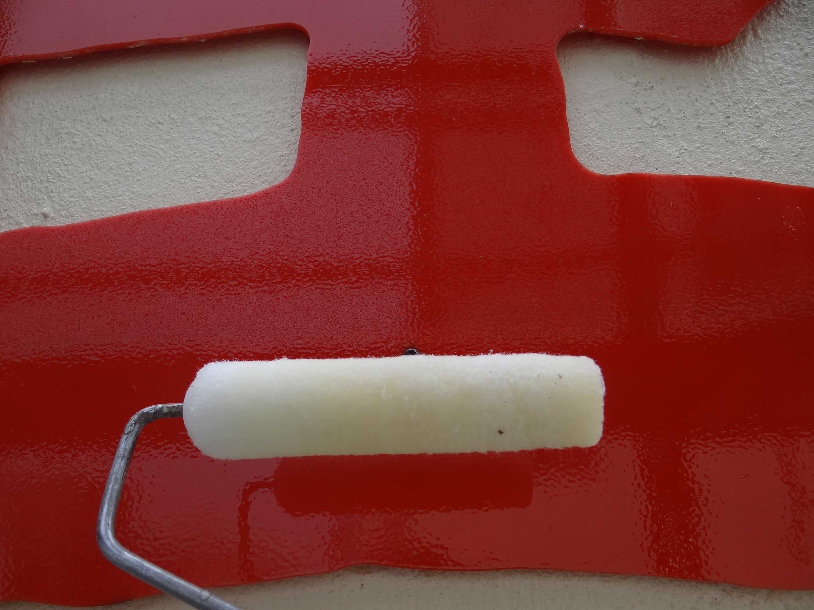 看板のクリアーもコロコロ~と塗布。