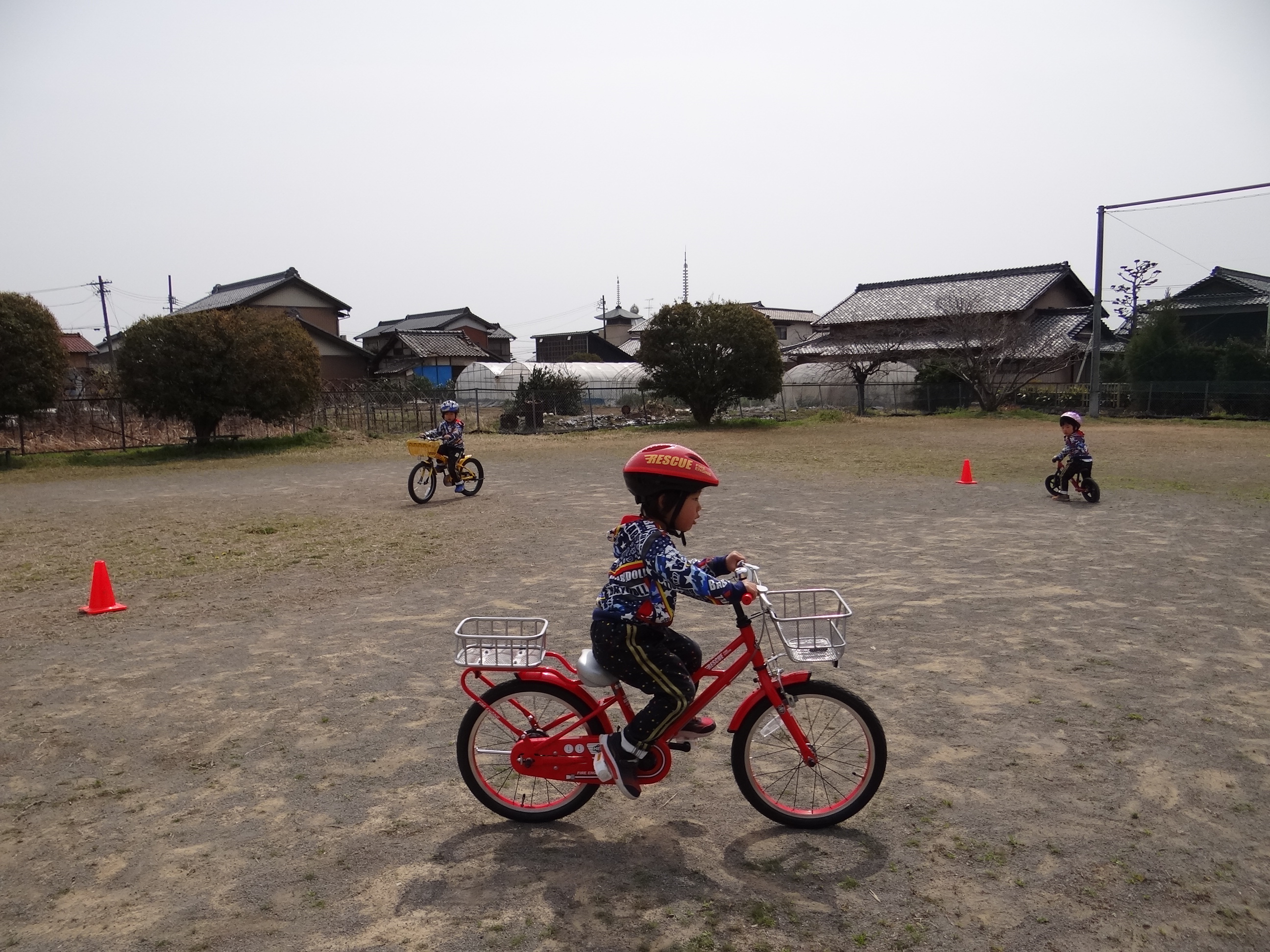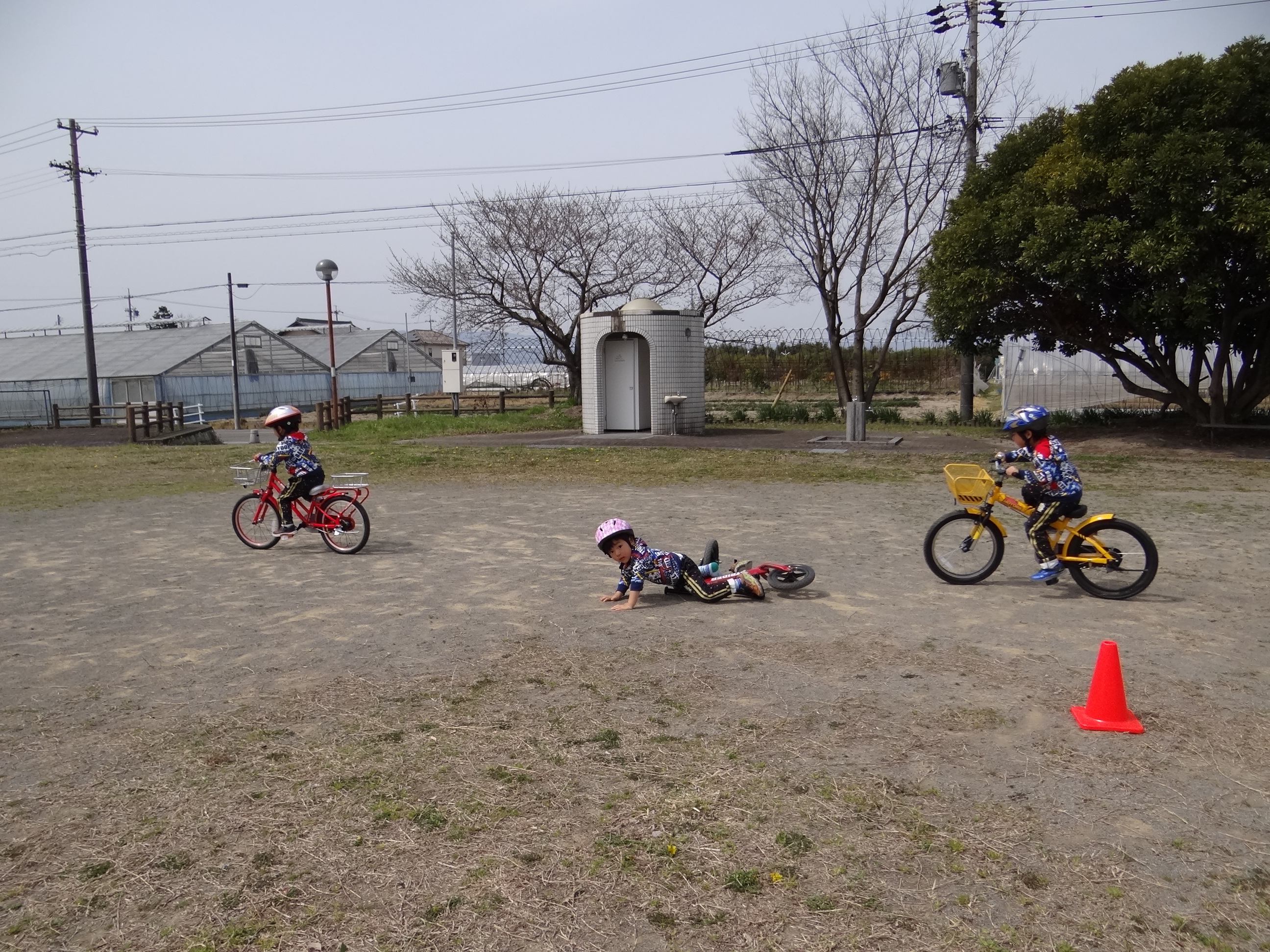 そんな頃、長男と三男は自転車を置いて滑り台で遊んでます。でも、次男は休みなく特訓です。