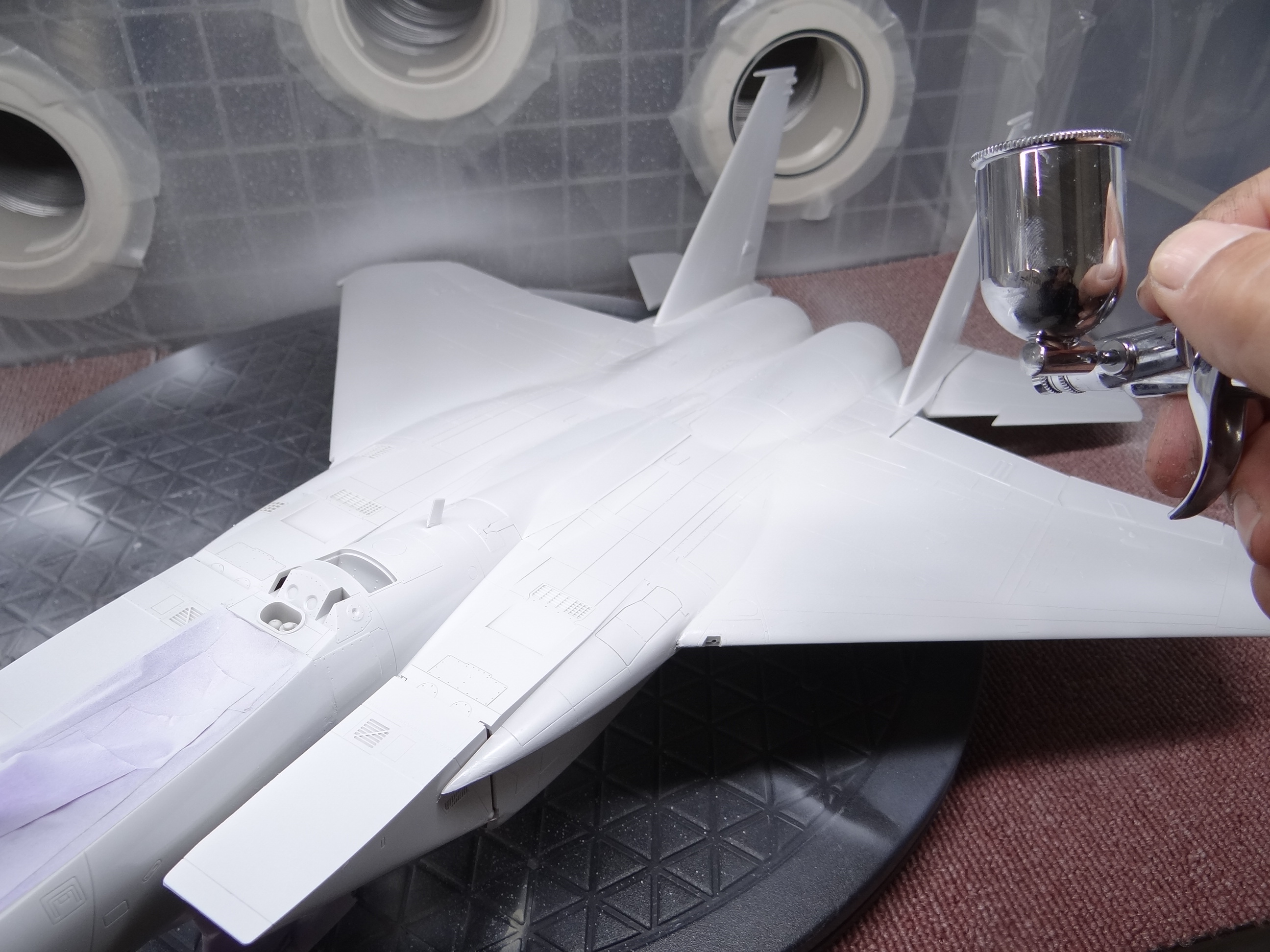 今朝はお犬さんのお友達が遊びに来てくれました。おやつも頂いてありがとうございました。そんな感じで現場へ向かう前にプラモデルのサフェーサー吹き。自作塗装ブースに入りきらない。。。