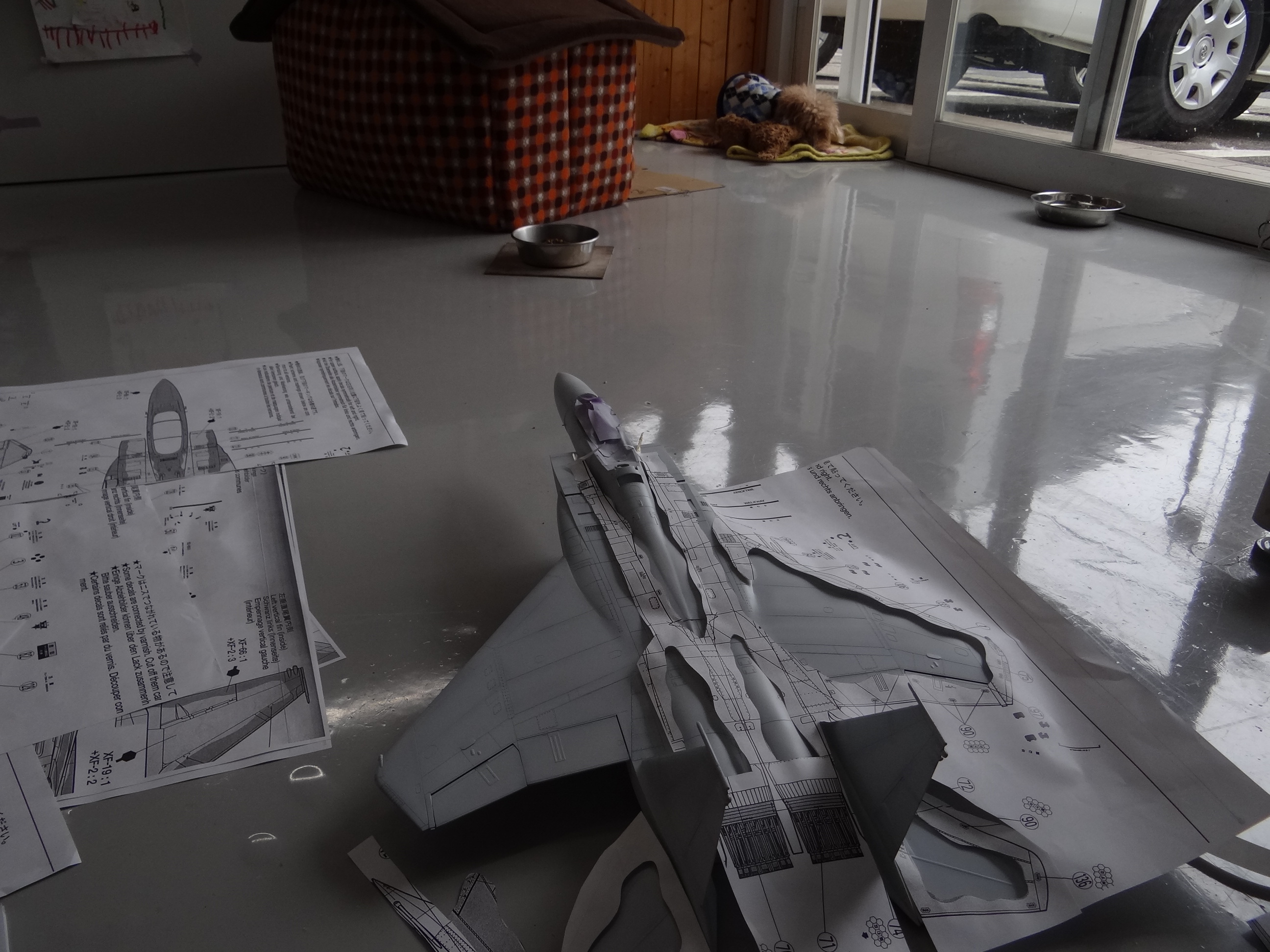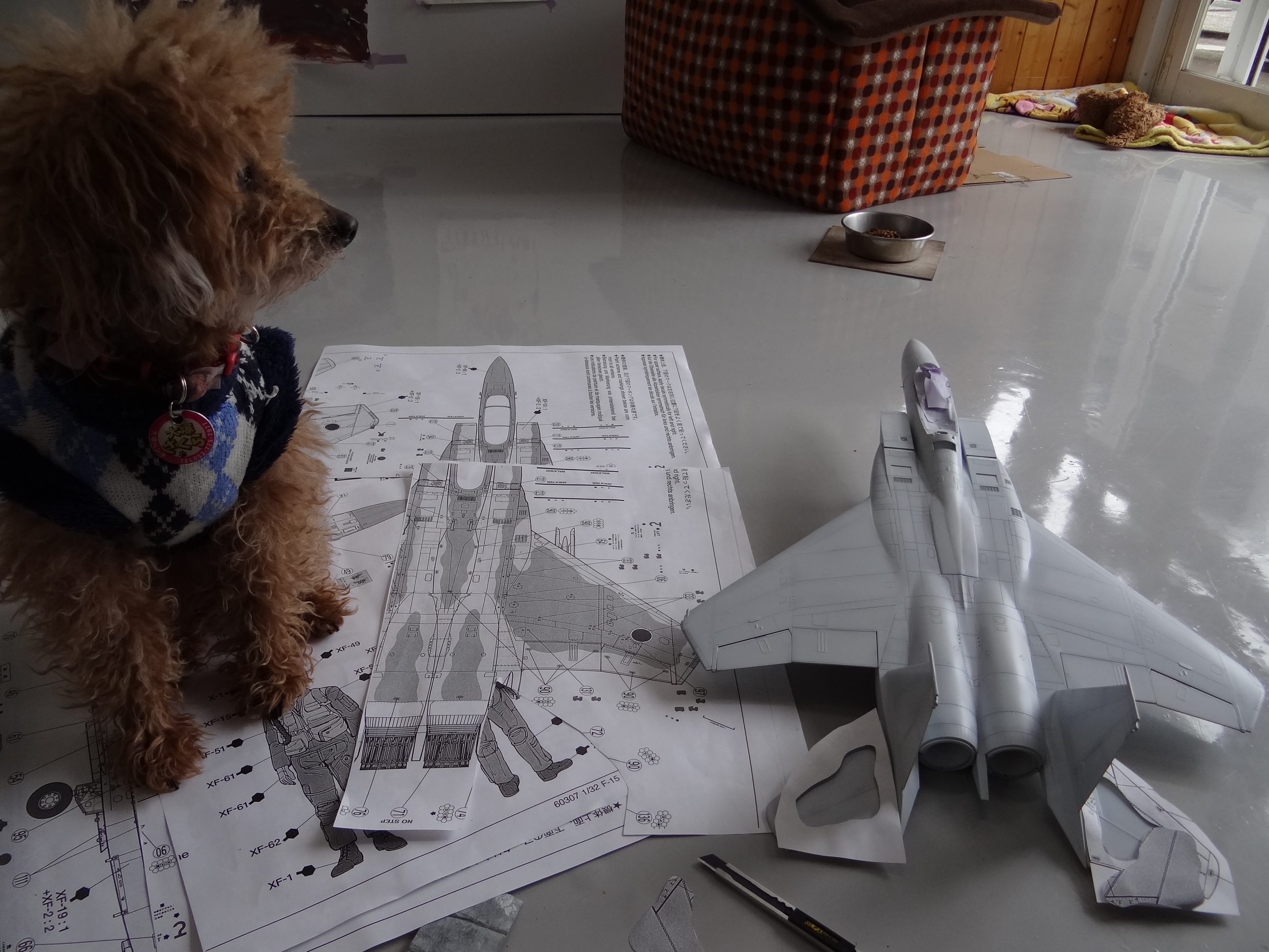 さー帰宅後はプラモデル。マスキングをしよう。お犬さんがお邪魔。。