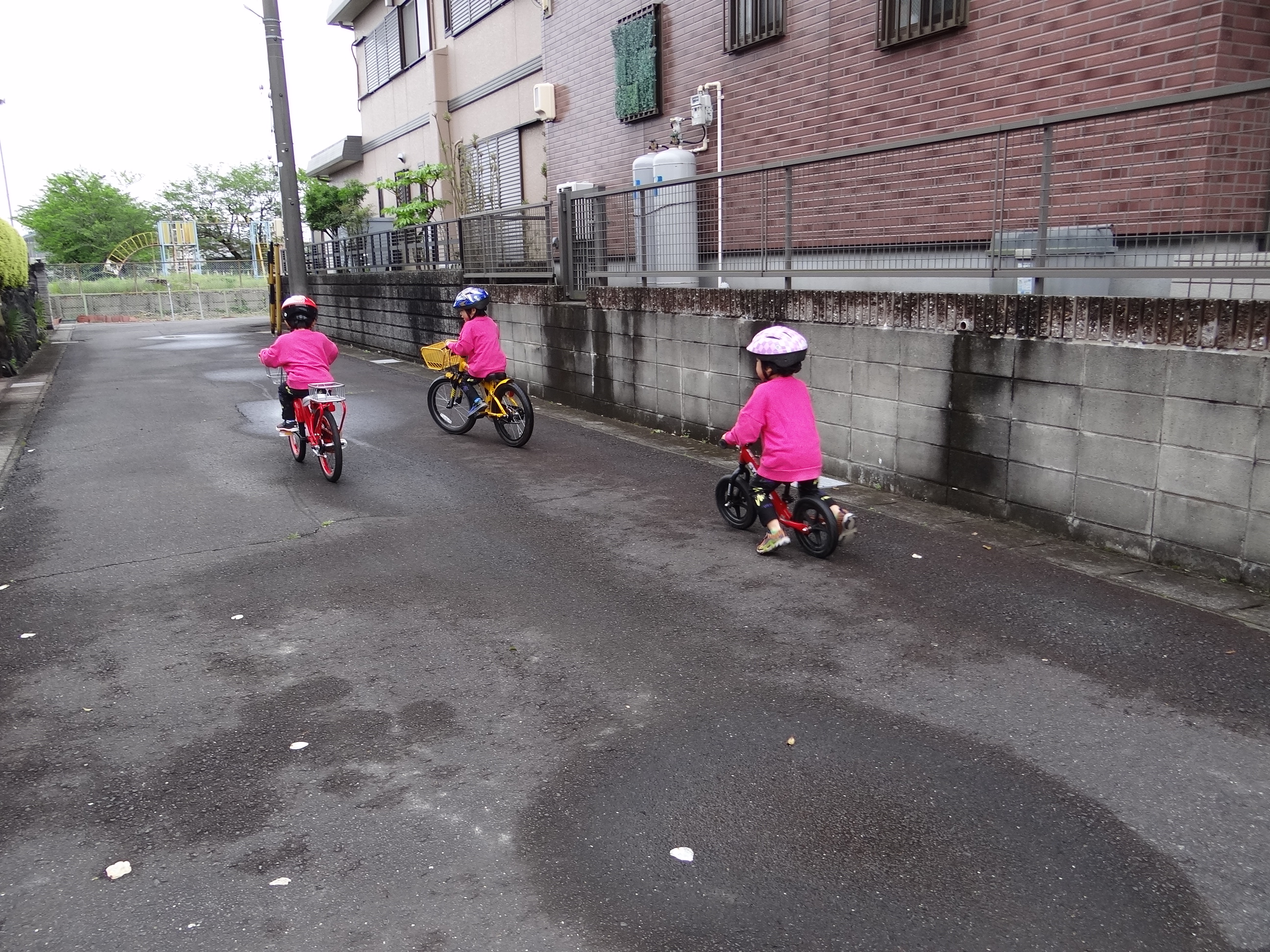 少し雨が止んだので自転車の練習。