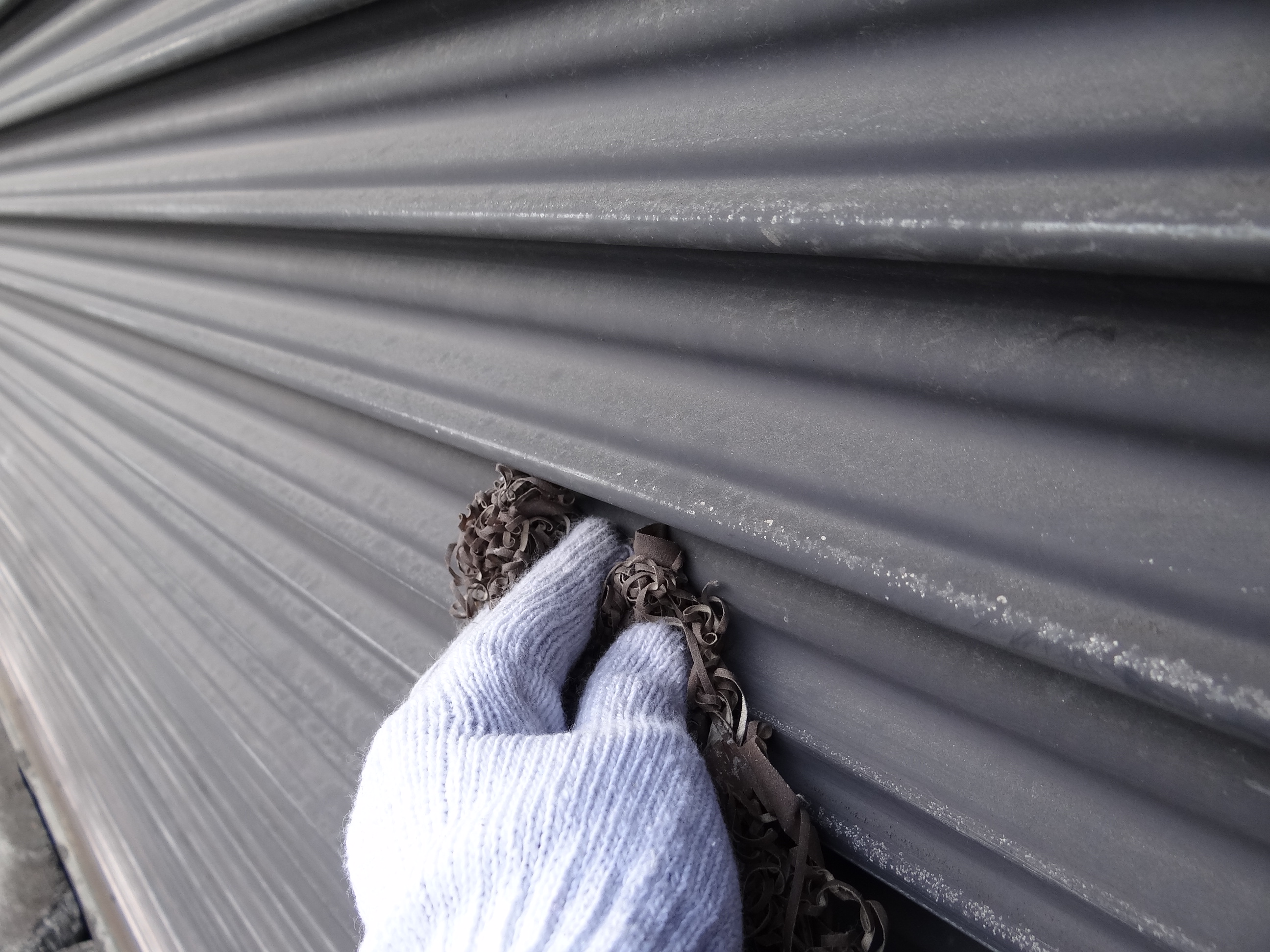 今日はシャッターの塗装工事を行いました。まずは素地調整。