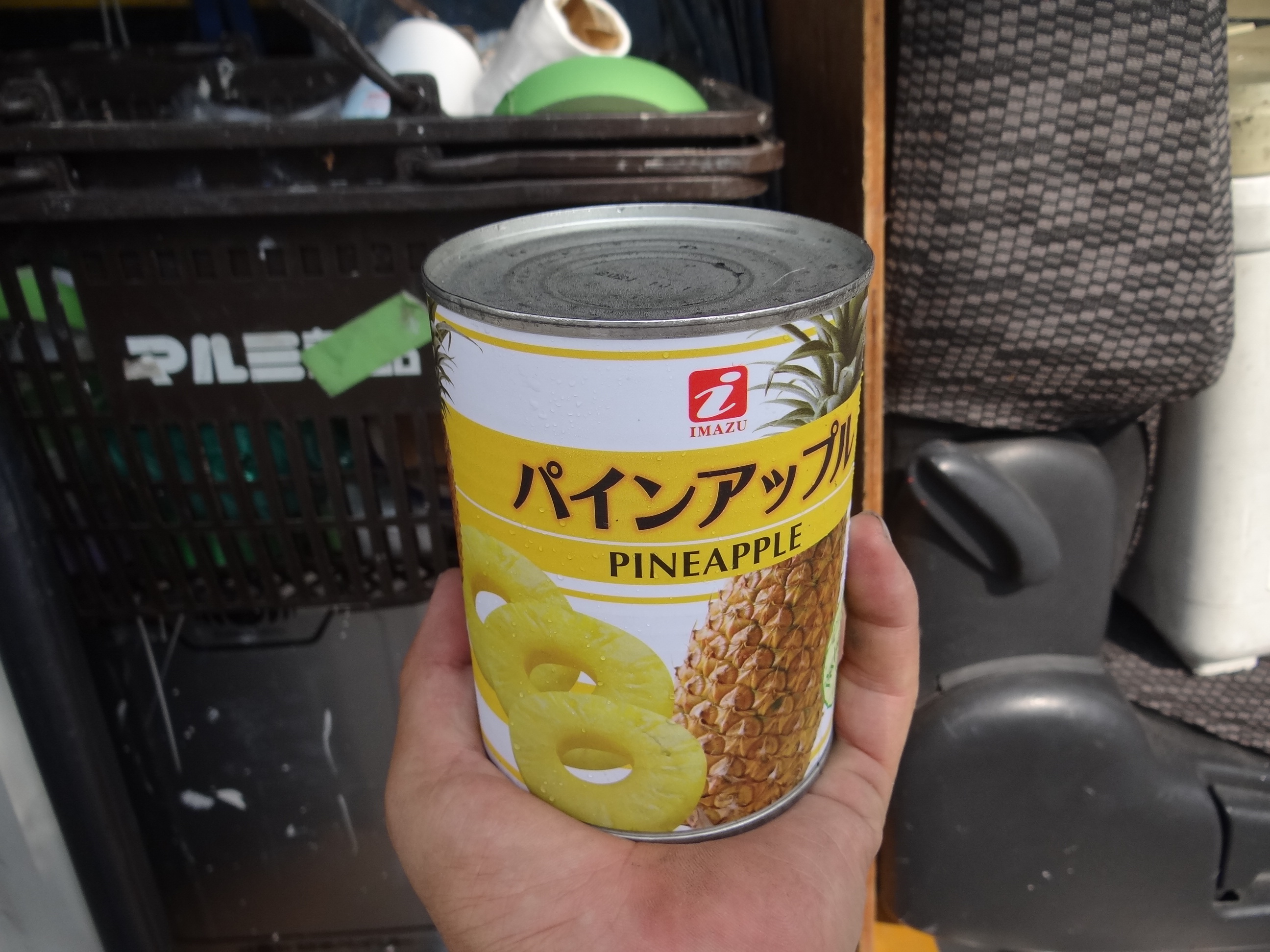 御施主様からのいただき物です。キンキンに冷えたパイナップル缶。ありがとうございました。