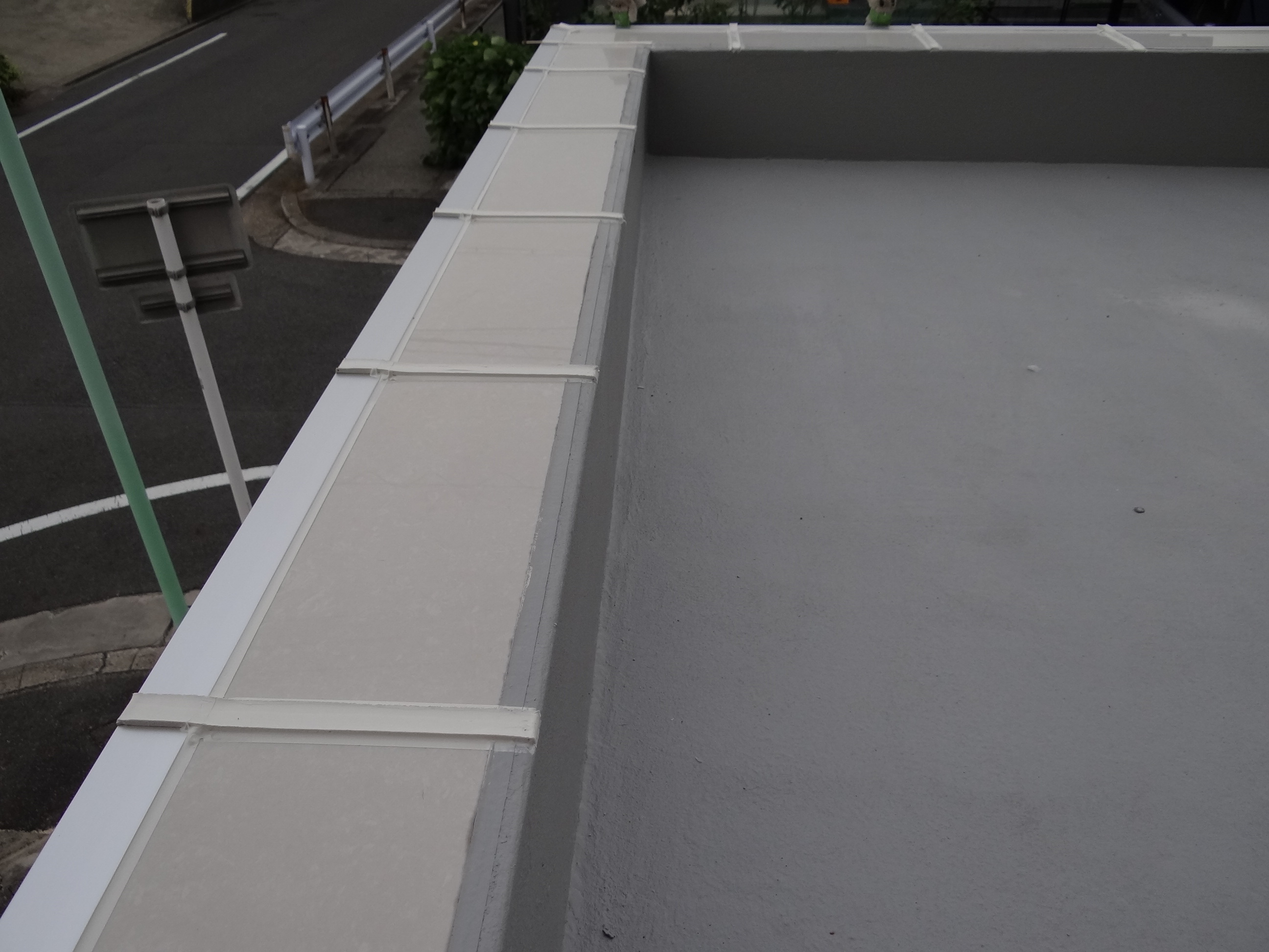昨日のシールが予想より早く乾燥したのでバックアップ材を撤去。その後、金物端部とブリッチシーリング端部のシール打設を行いました。これで外壁石材の落下防止対策工事の完了です。