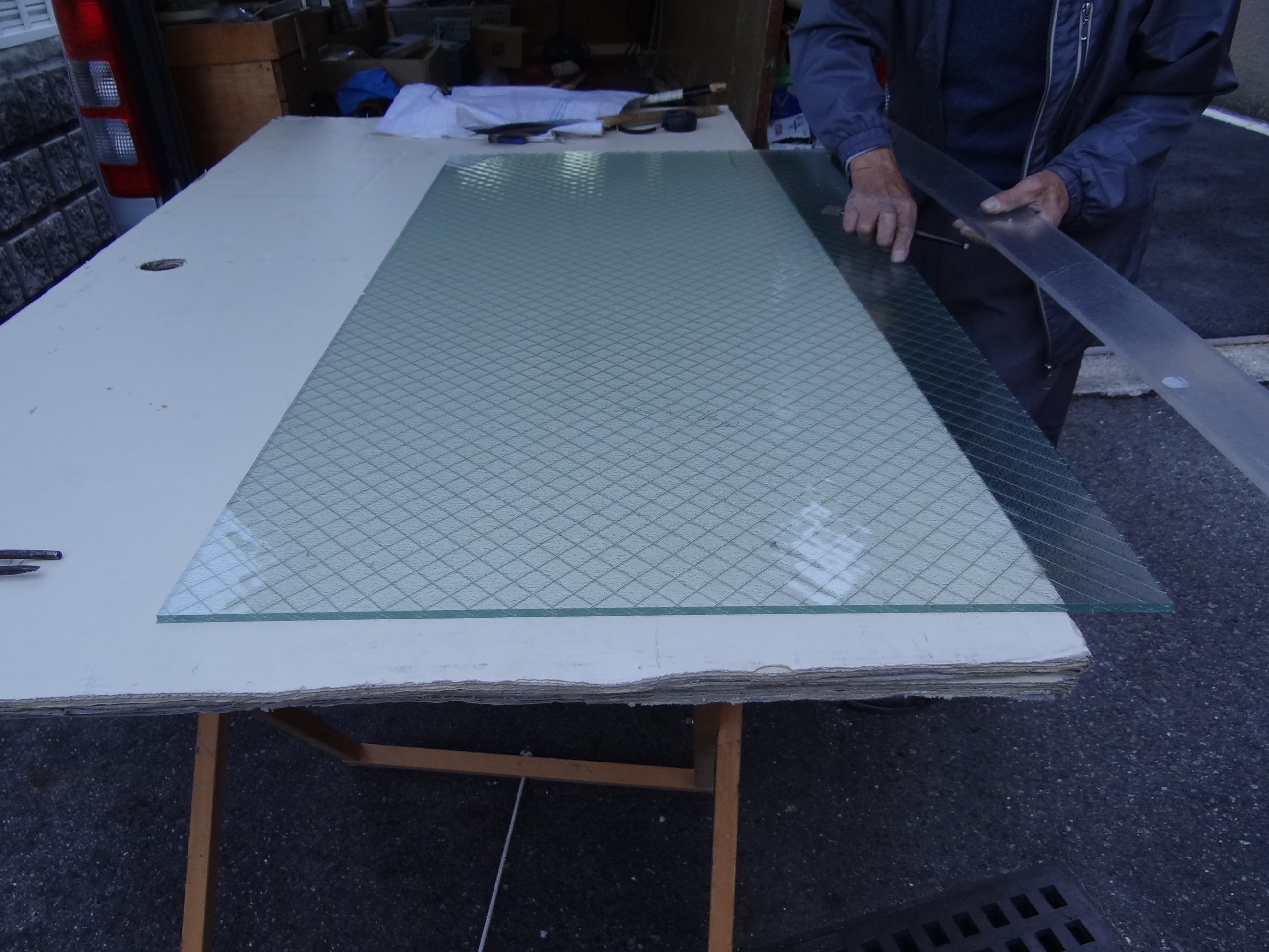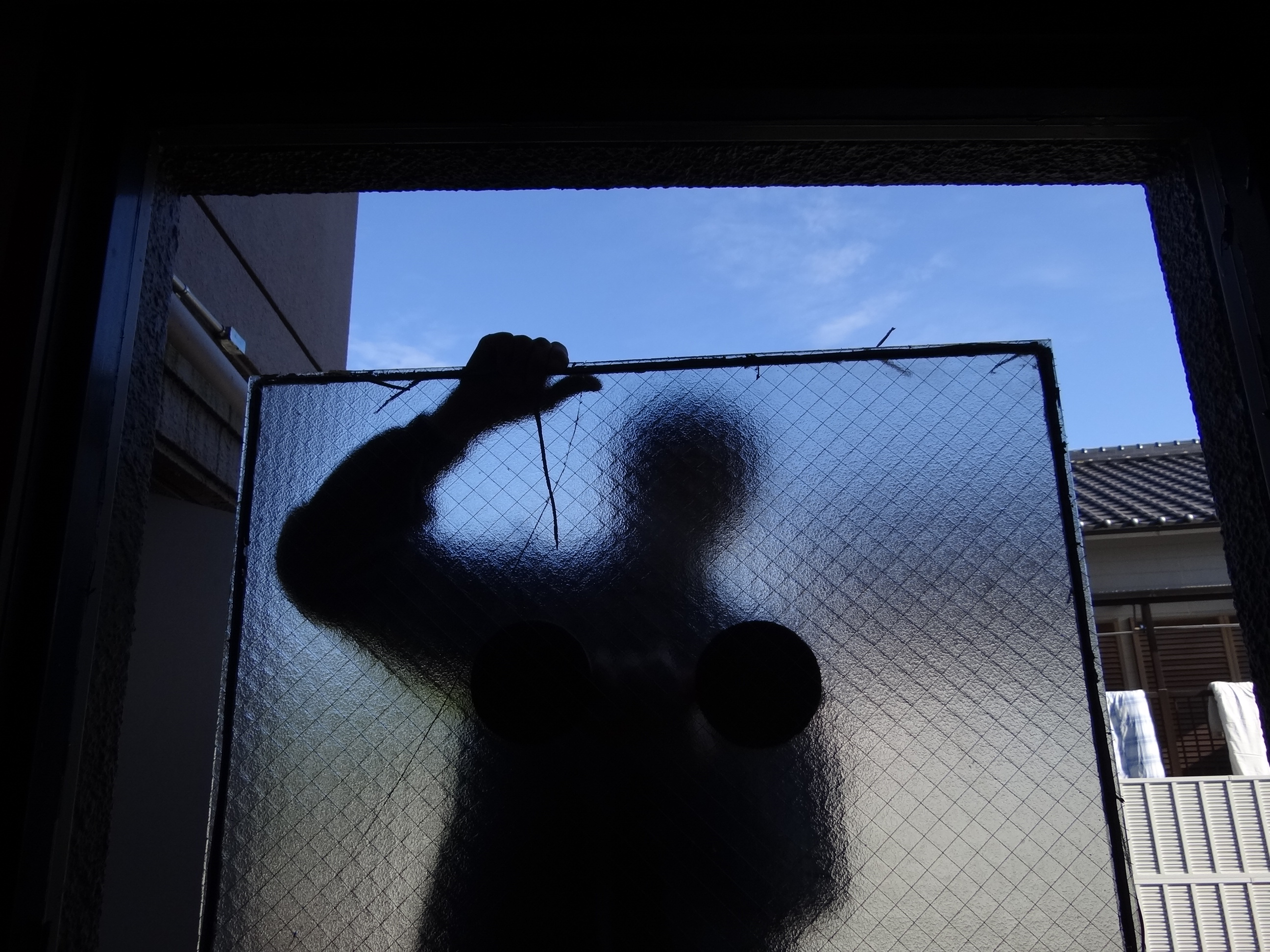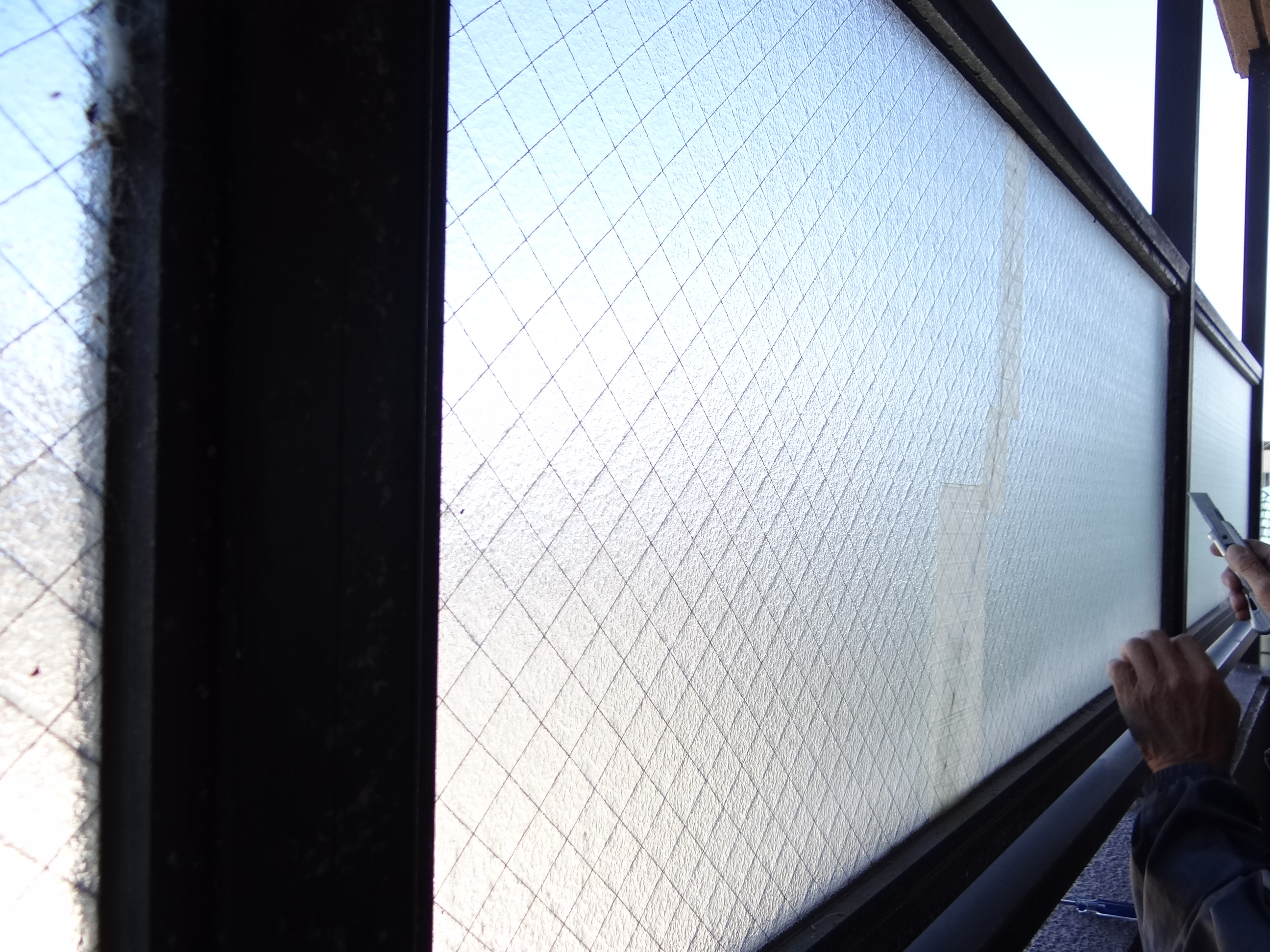 既設ガラス取り外し、