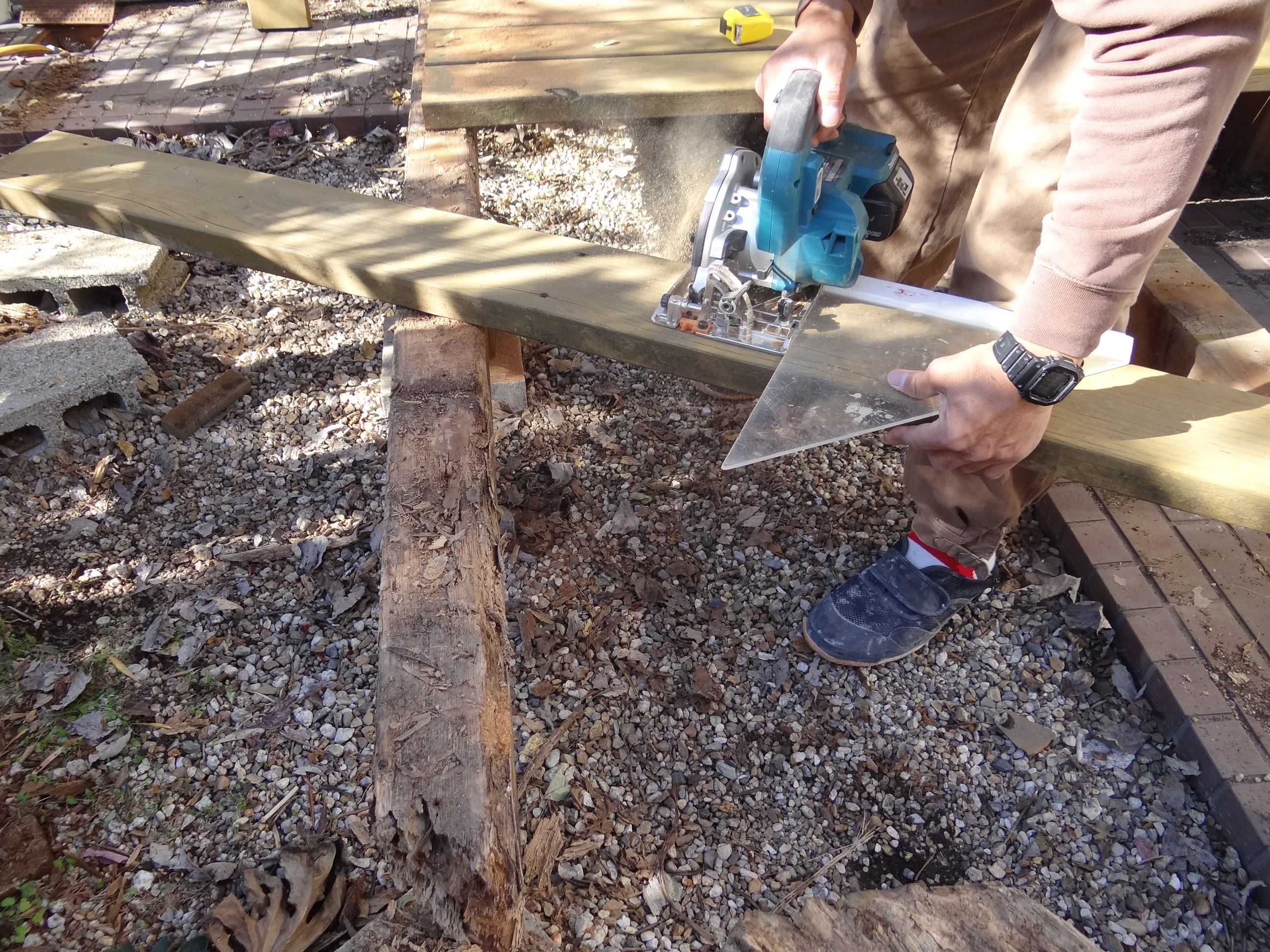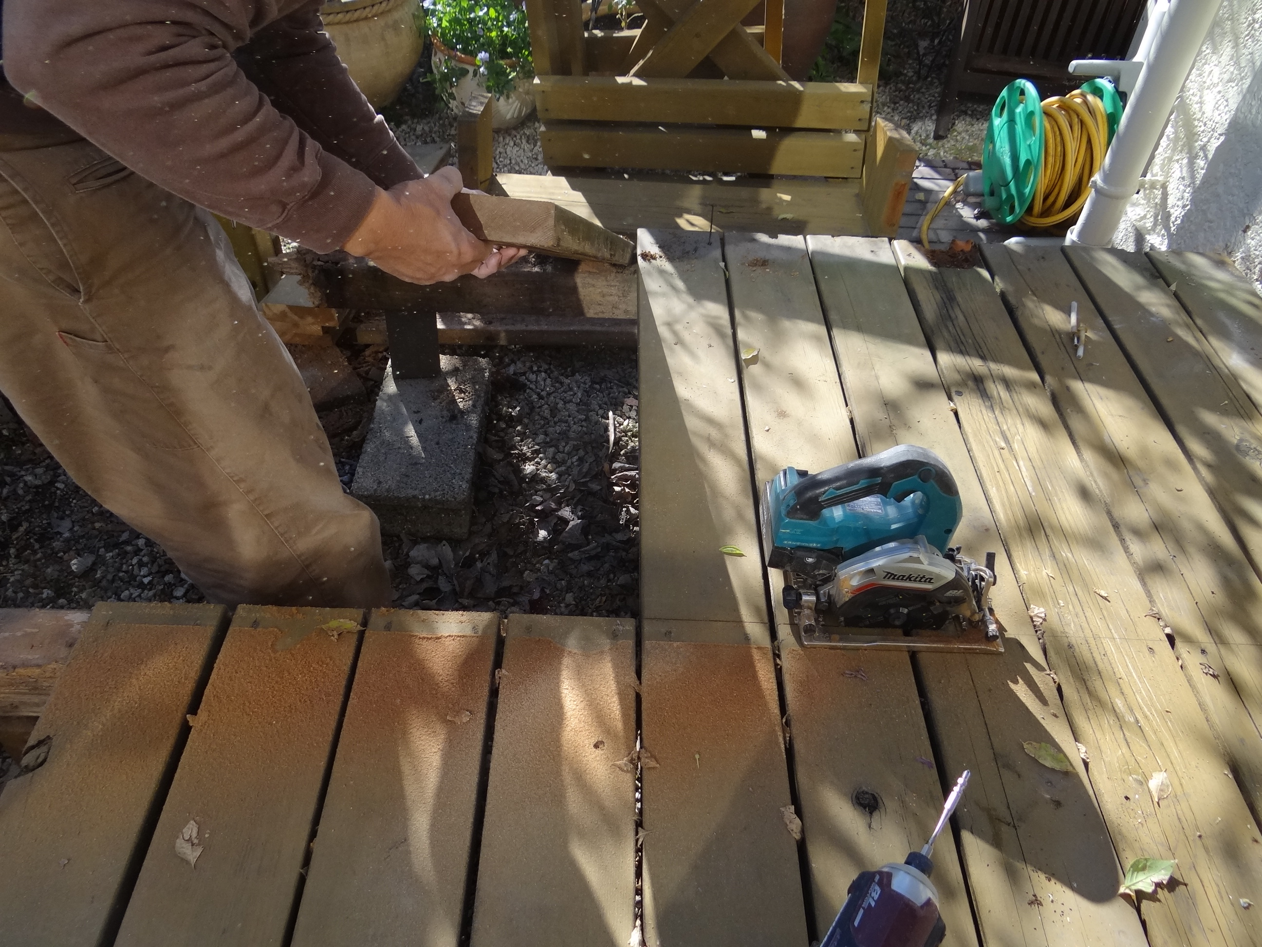 ウッドデッキの補修を行いました。ぱっと見には問題なさそうですが、