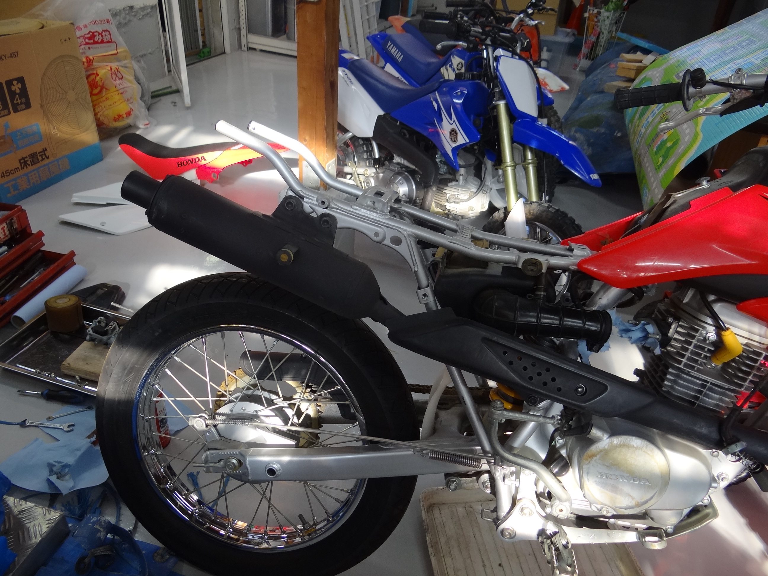 そして最近、チビ達にバイクの乗り方を教えているんですが、自分が乗るバイクがない。またCRF100が欲しいけど新車はない。なので友達を拝み倒し譲ってもらいました。走行数時間のかなり程度のいい車両。いつ乗るのかわかりませんが、整備をしているこの時間がとても楽しいですね~