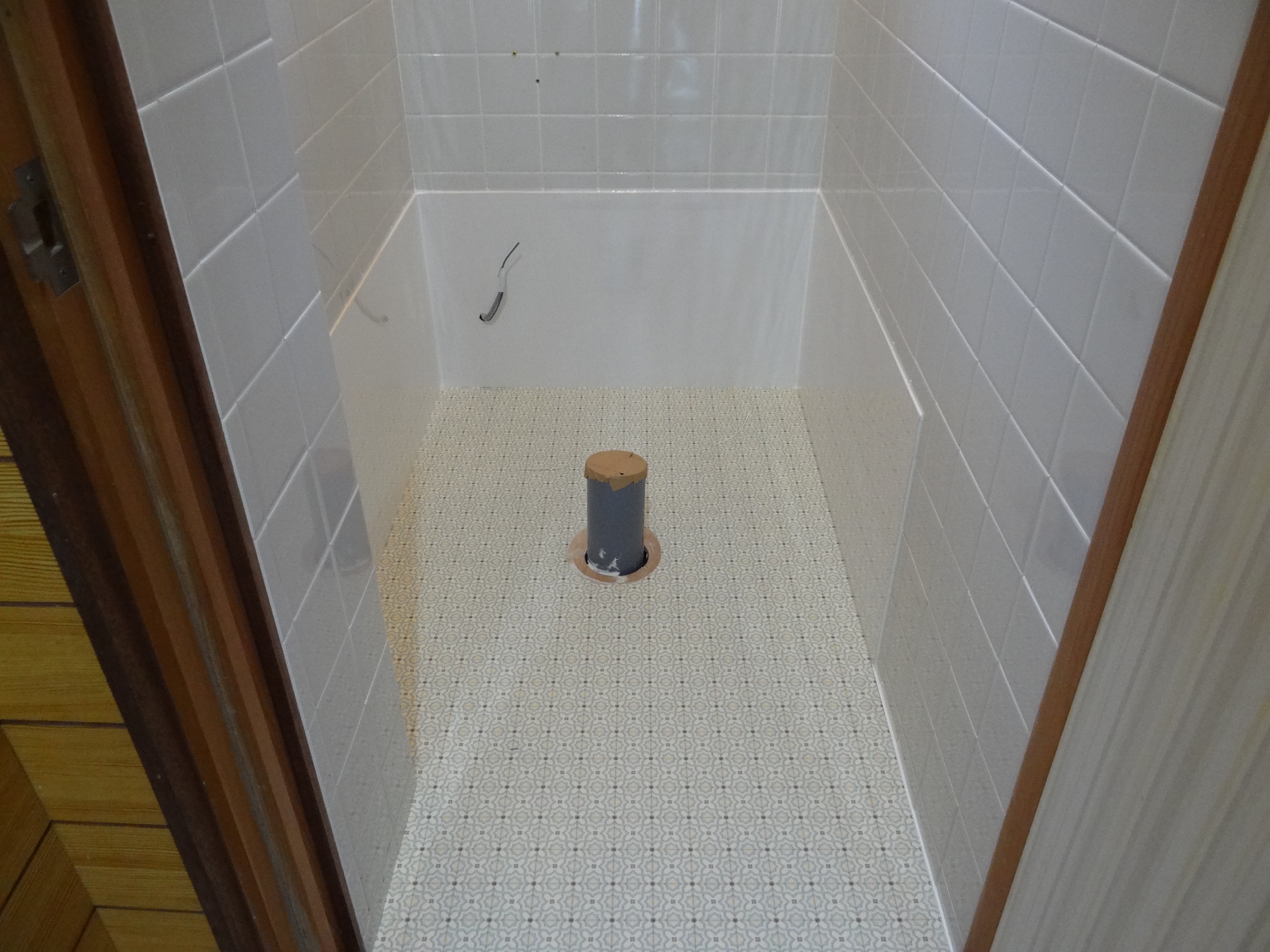 そしてクッションフロアを貼って今日はここまで。今度は明後日、便器を設置して完了ですね。