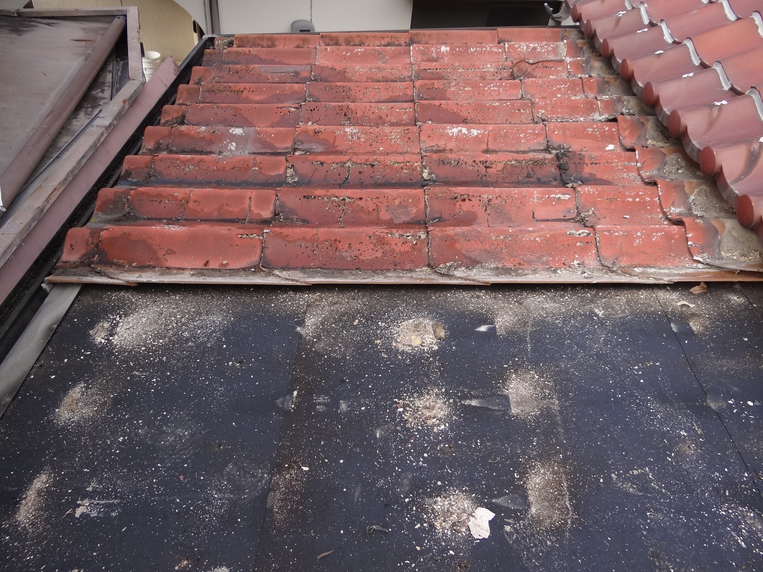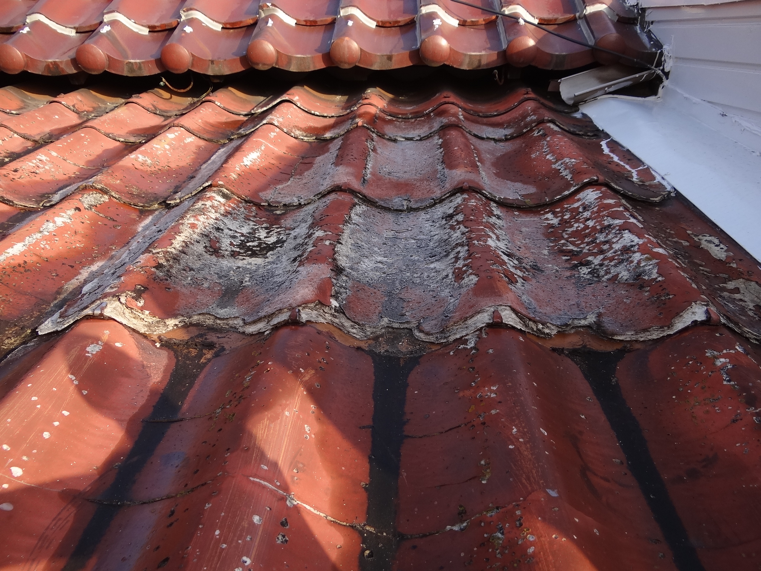 別の現場では屋根工事を始めました。U瓦ですが、ここまで経年劣化が進むと塗装はできません。
