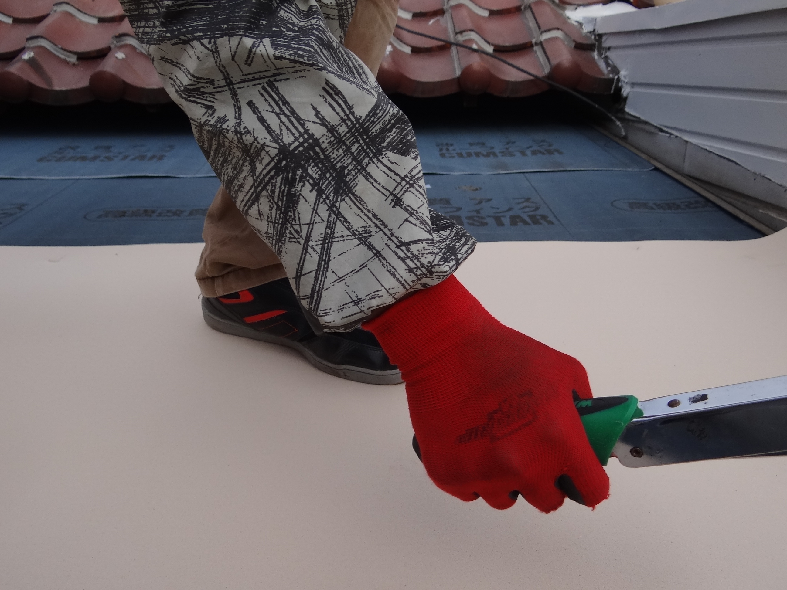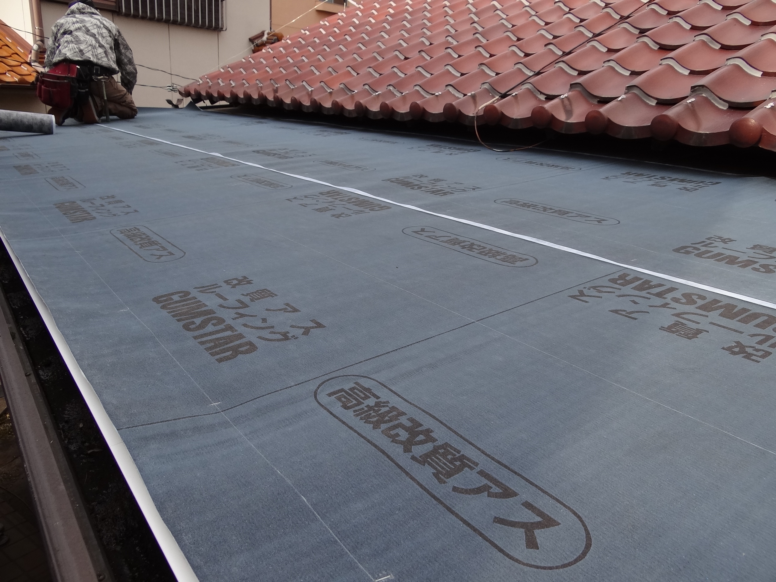 屋根工事。