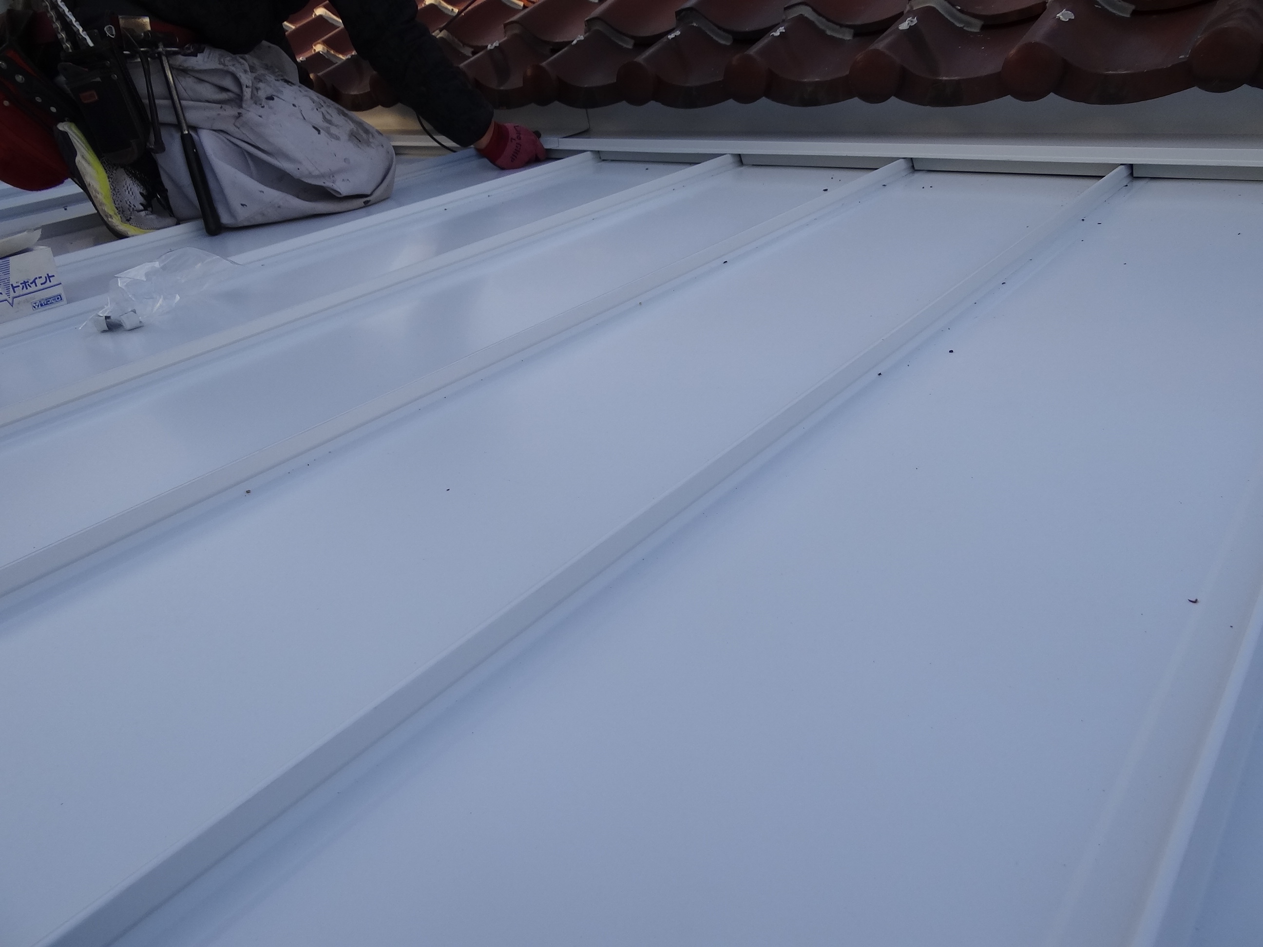 ガルバリウム鋼板をはります。残すは明日、樋の設置です。