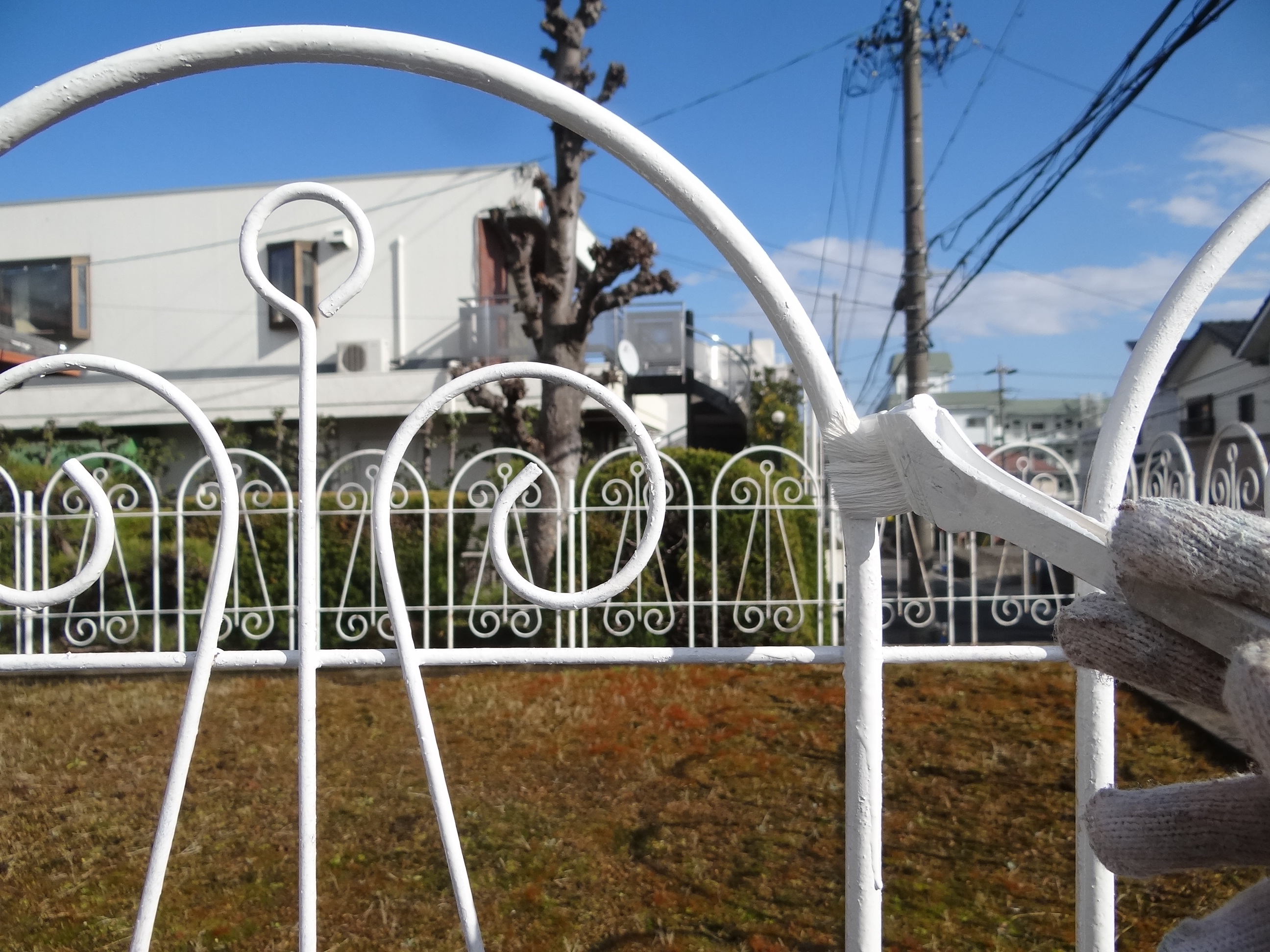 フェンスの塗装です。まずはケレンから。そして錆止め塗布。いつもよくして下さる方から着物を譲り受けました。この着物で妻が卒園式に行きますね。大切にしますありがとうございました。