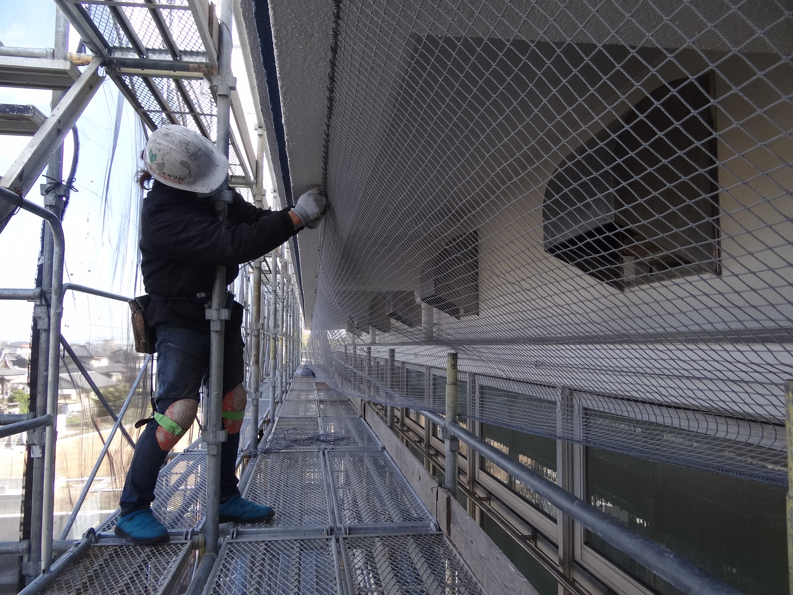 仮設足場の設営。