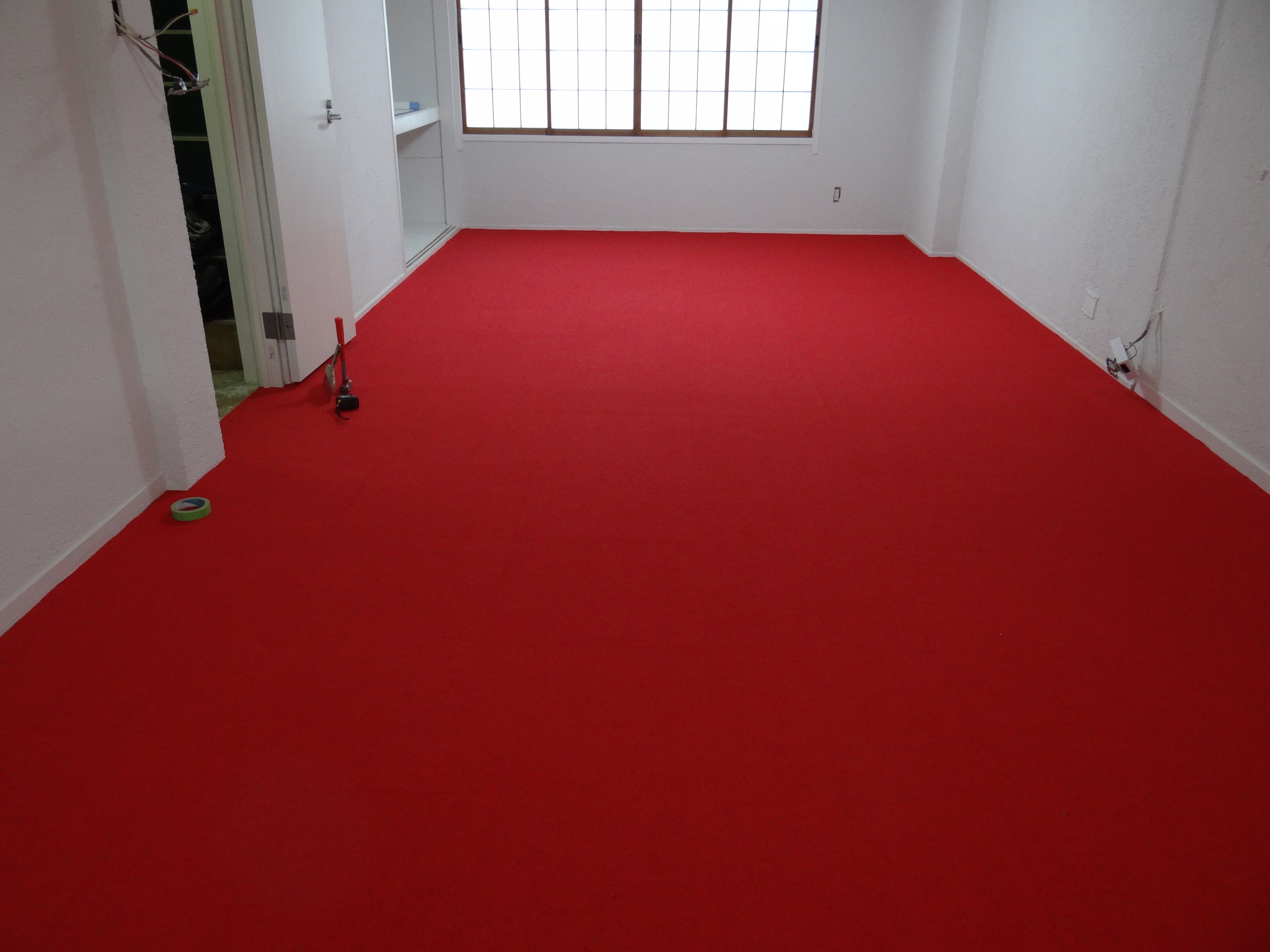 今日は天気予報通り雨なので現場は中止です。なので事務仕事を進めながら子供部屋の床張りです。まだタックが少々強いけど貼っていきます。