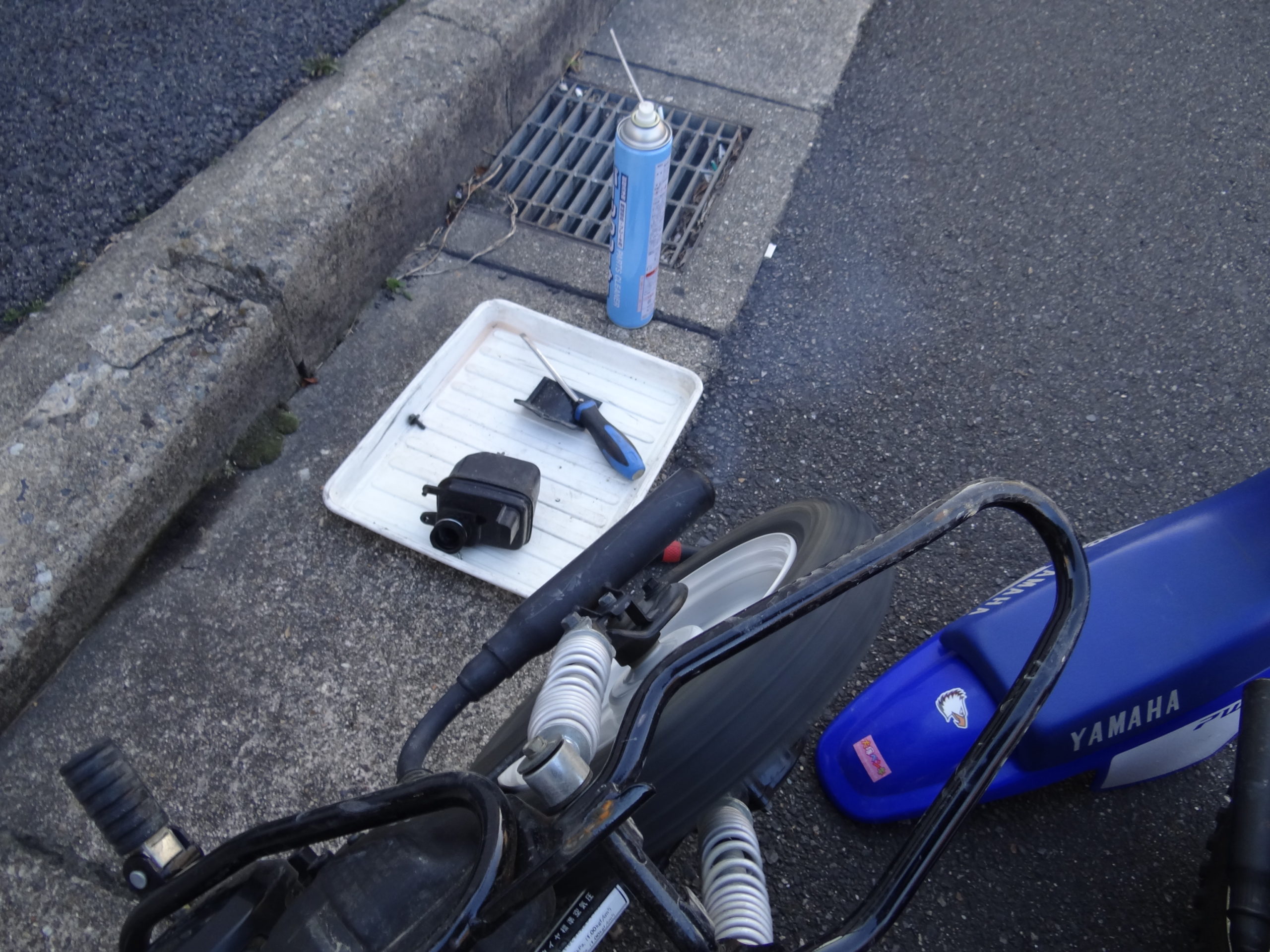 あれ?ちょっとエンジンのかかりが悪いので、キャブとエレメントの清掃。