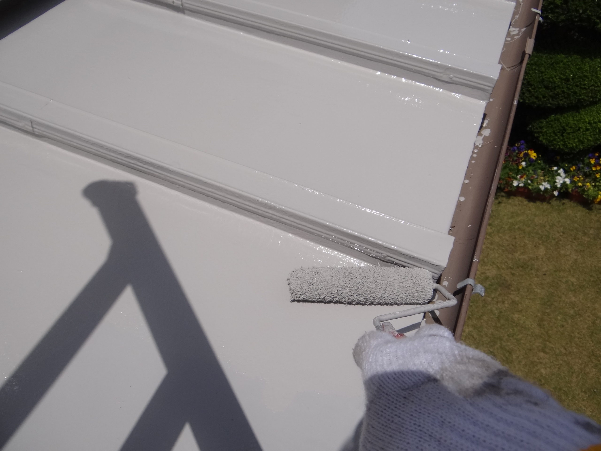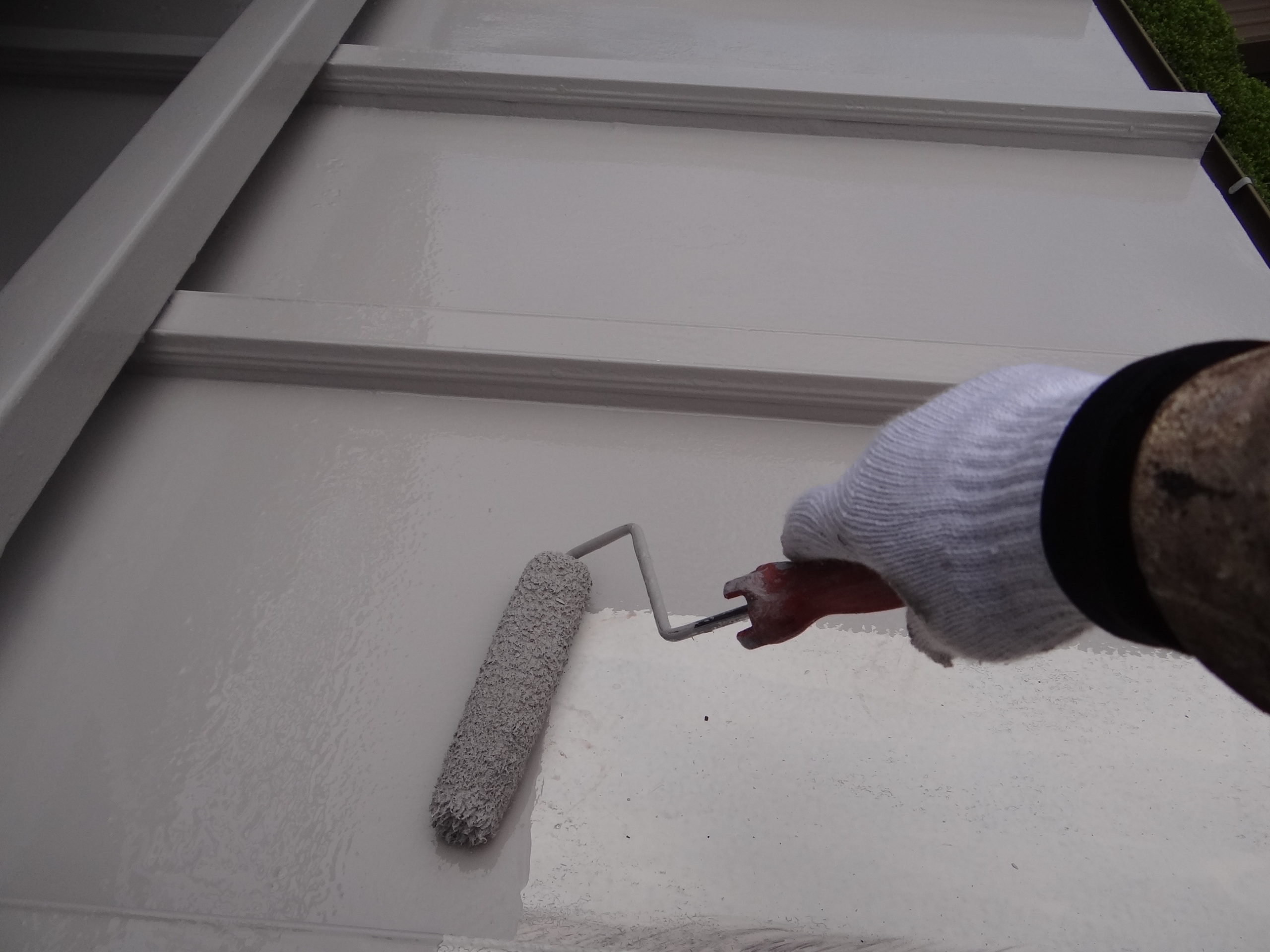 乾燥後、仕上げの上塗り施工中。