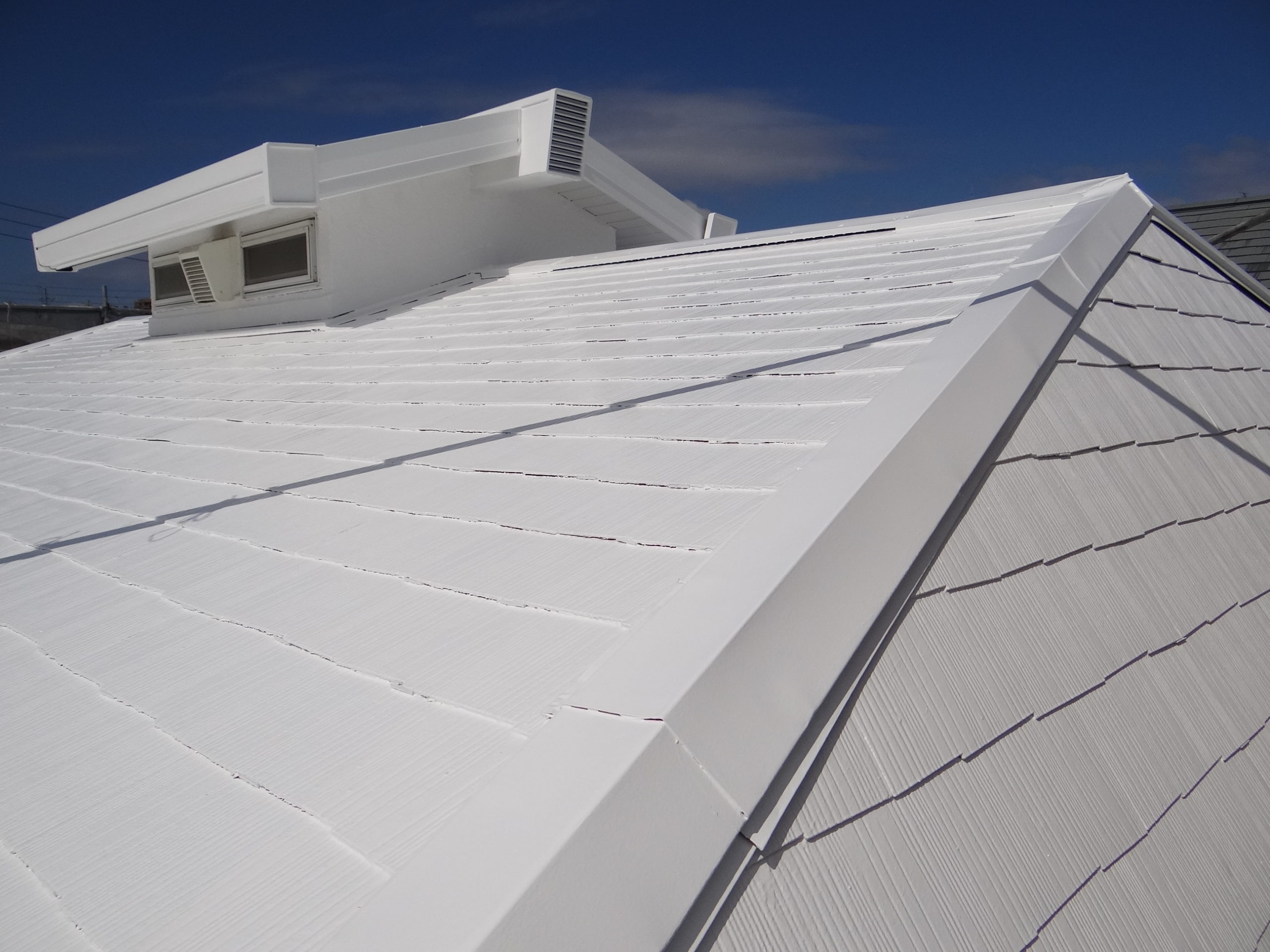 カラーベスト屋根の仕上げで2回目の上塗りを行いました。