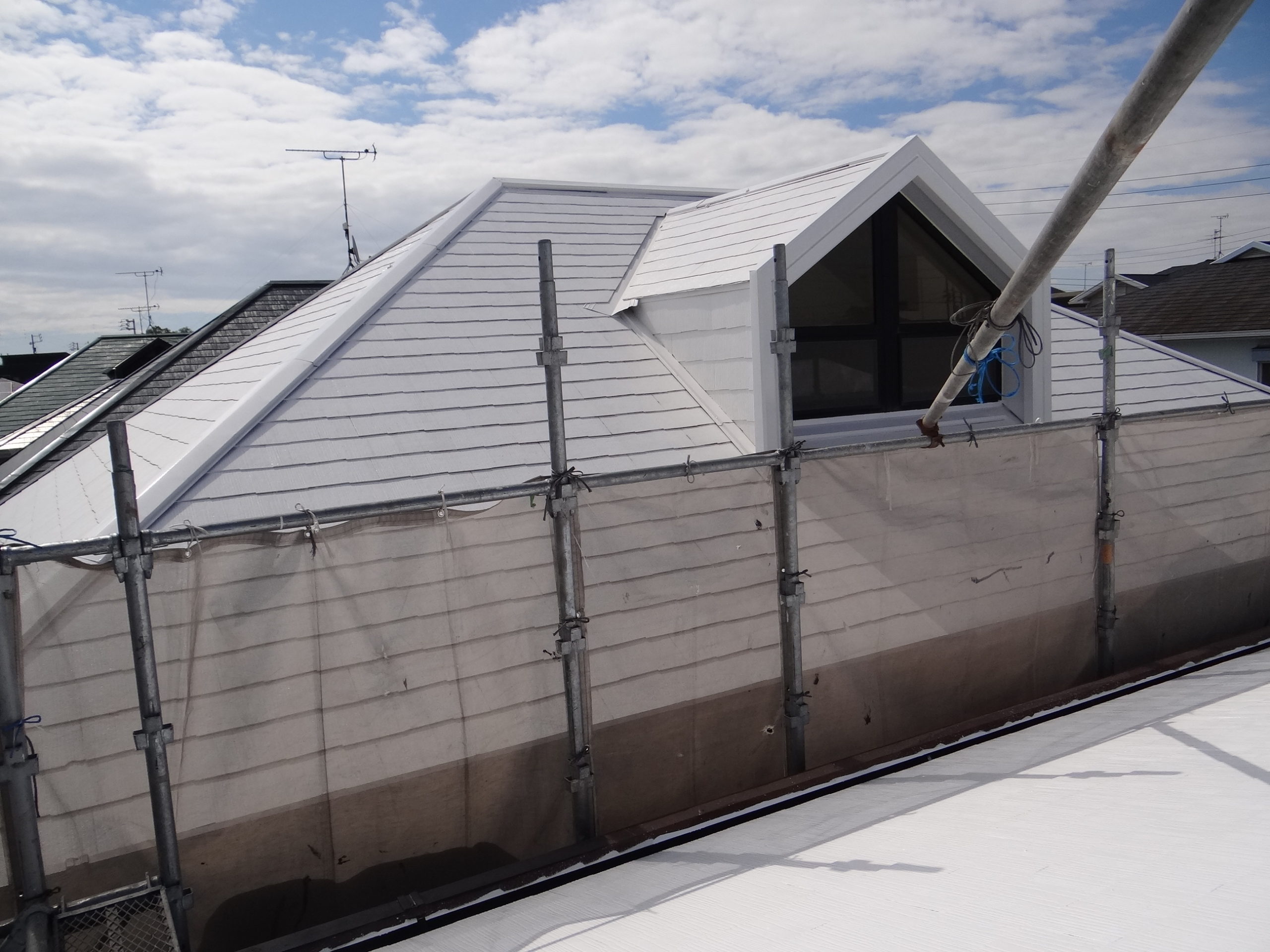 お隣様の建物は昨年、施工させていただきました。屋根もしっかりとチェックして不具合なしです。