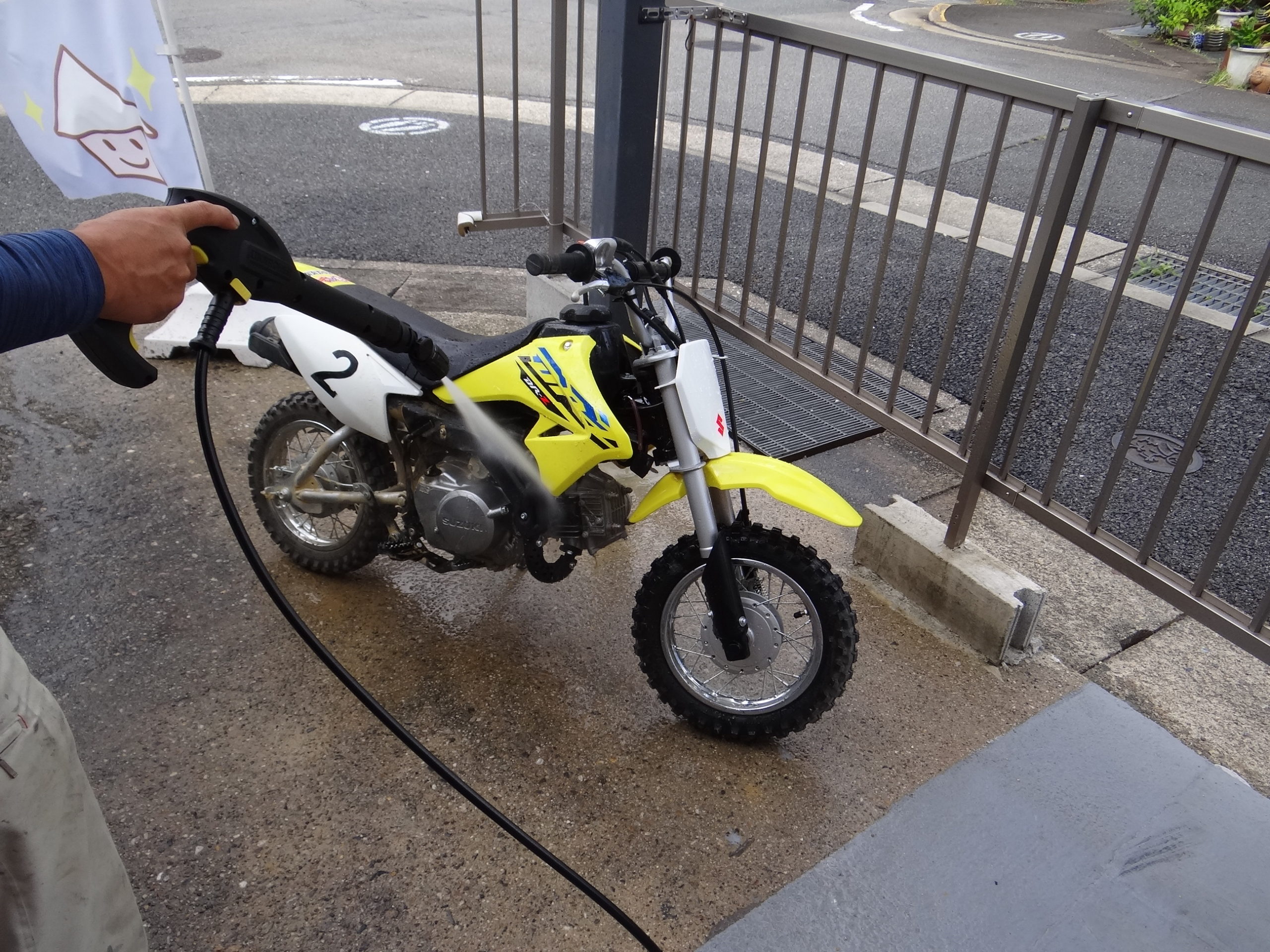 車両の洗車。さーてと、転倒ダメージのチェックをいたします。
