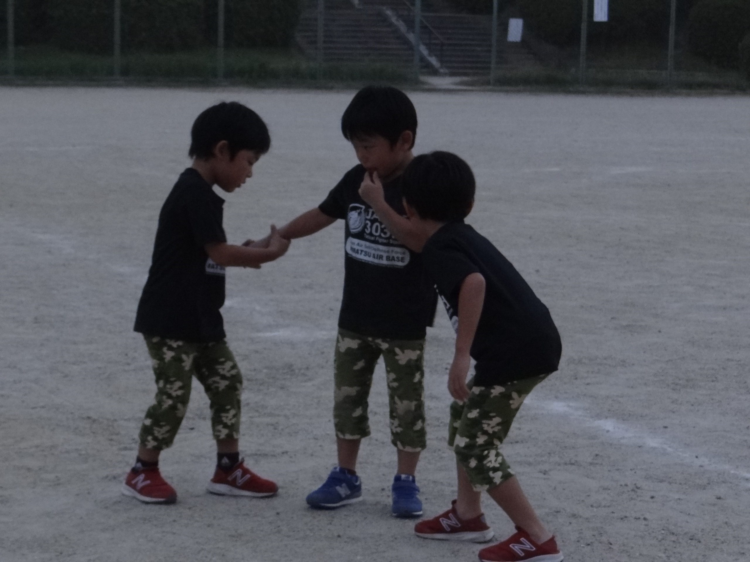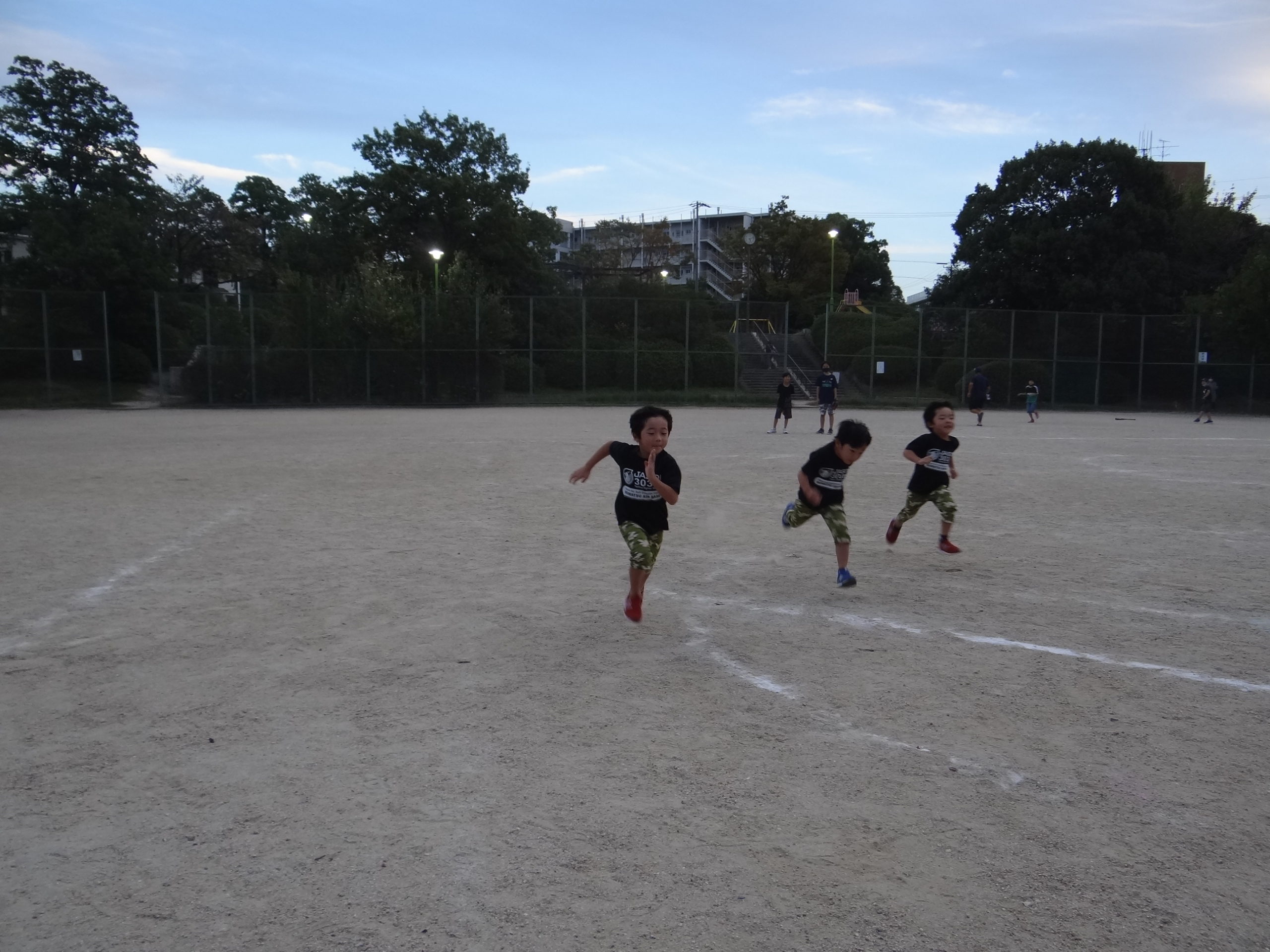 今日、保育園の運動会の練習があったらしく、ライバルに負けて悔し涙を流した次男。なので夕練です。近所の小学生のお兄ちゃん達も一緒に走ってくれました。