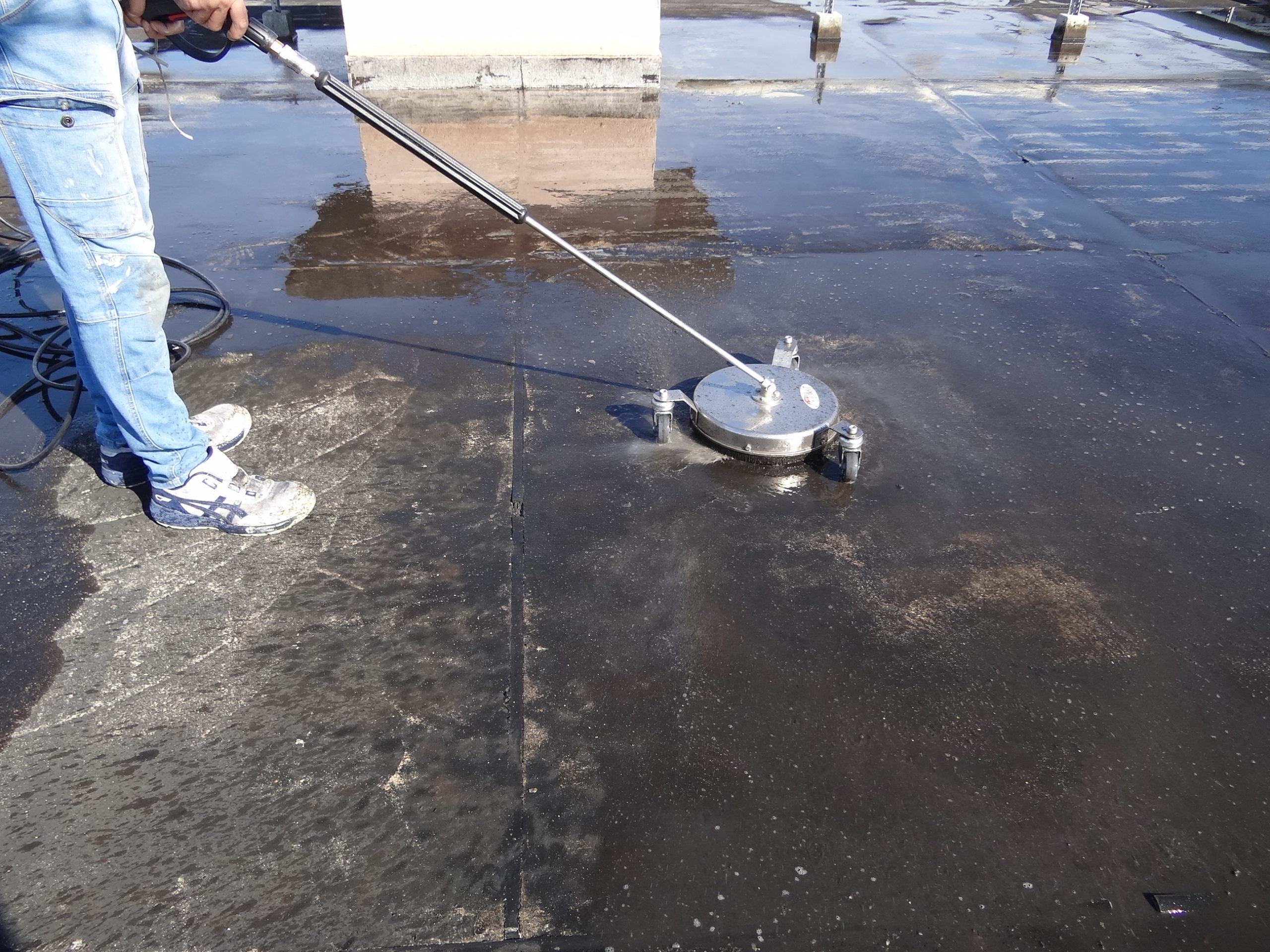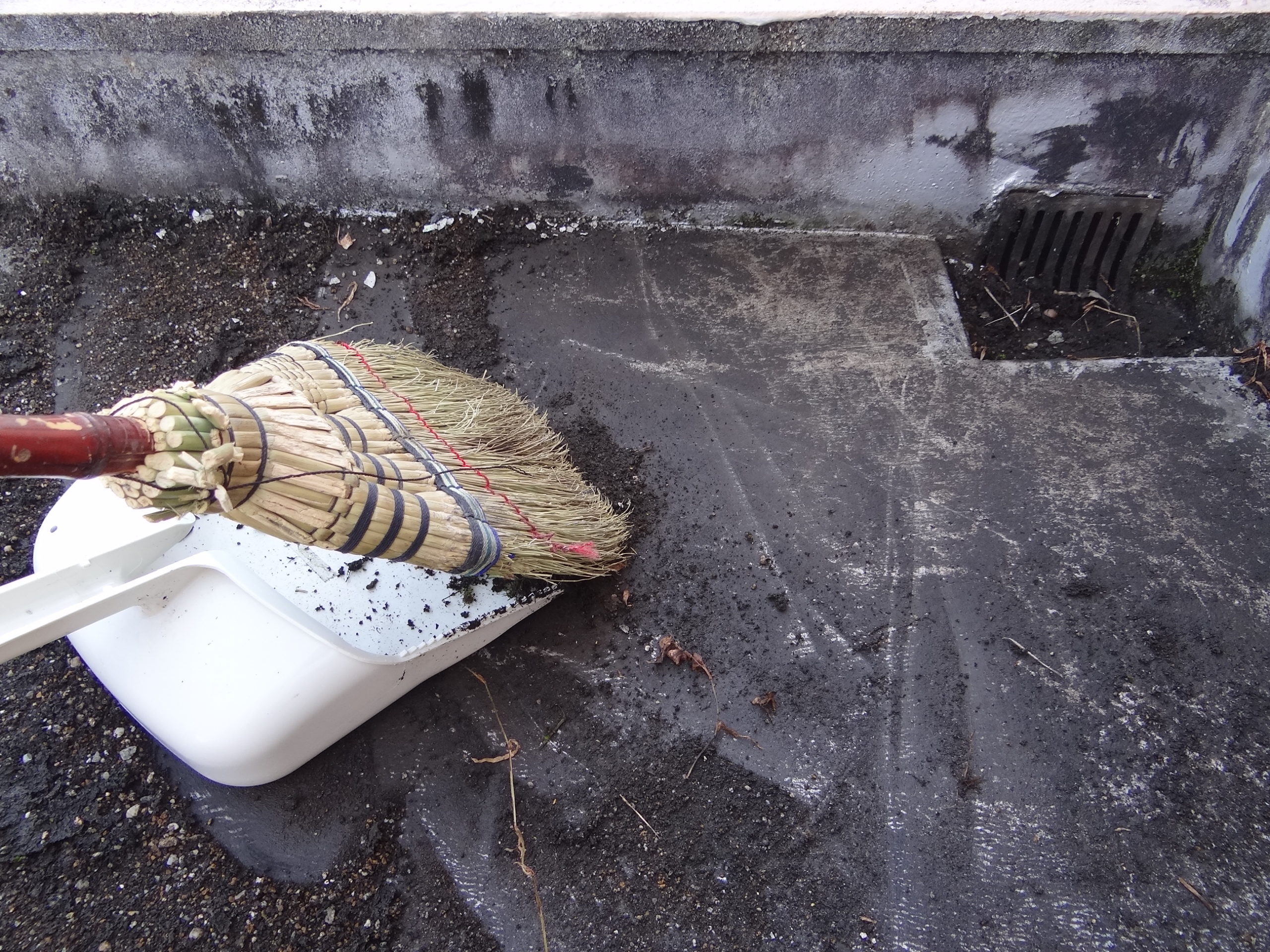 今日から防水工事がスタートです。まずは掃き掃除から。
