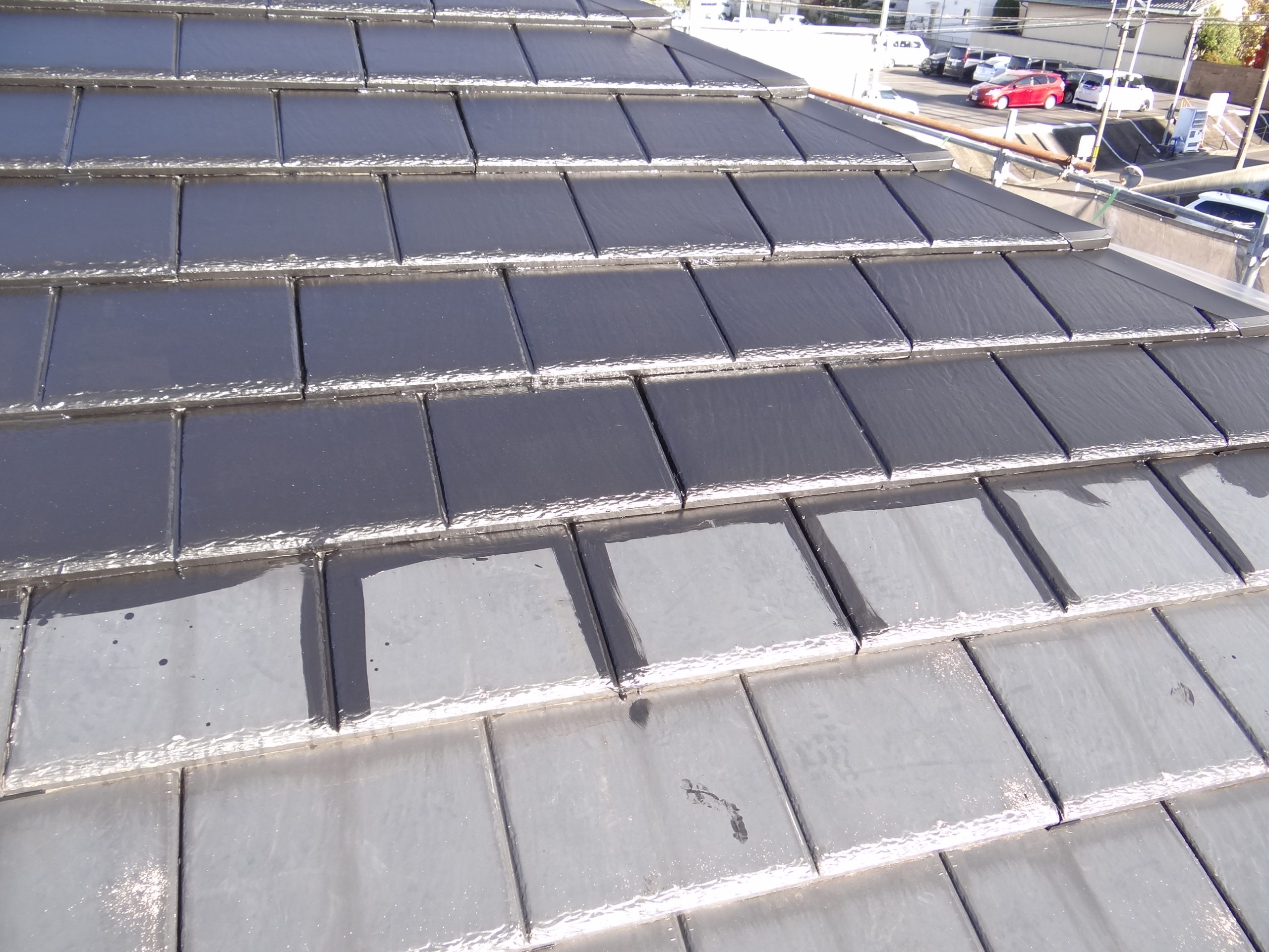 今日は屋根塗装を行いました。今回はタスペーサーを取り付けます。取り付け後。けっこう閉じ込められていた雨水が出ますね。さー下塗りのシーラー塗布。中塗り施工中。仕上げの上塗り施工中。な日です。
