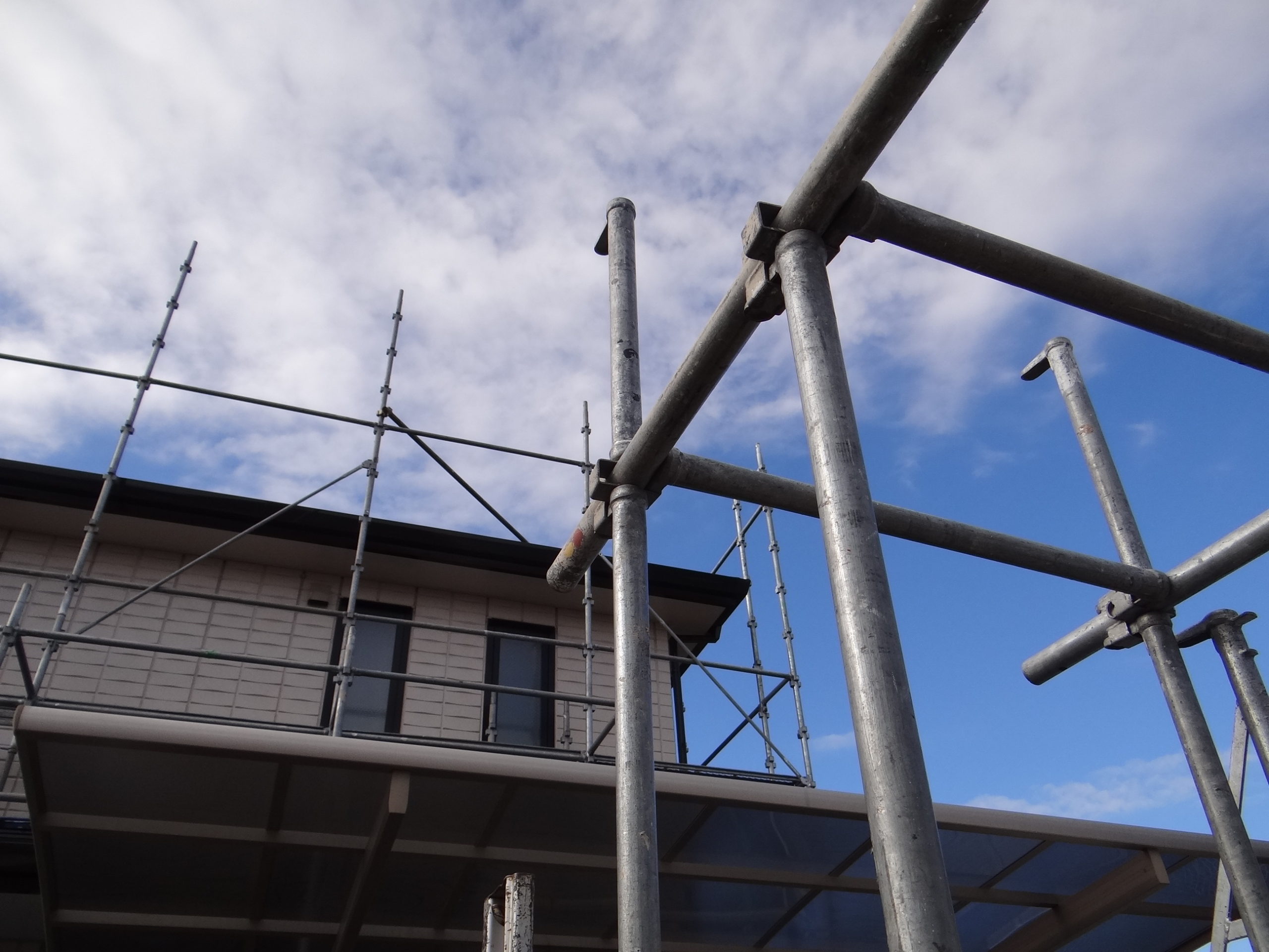 仮設足場の解体を行い、住宅塗装工事の完了です。