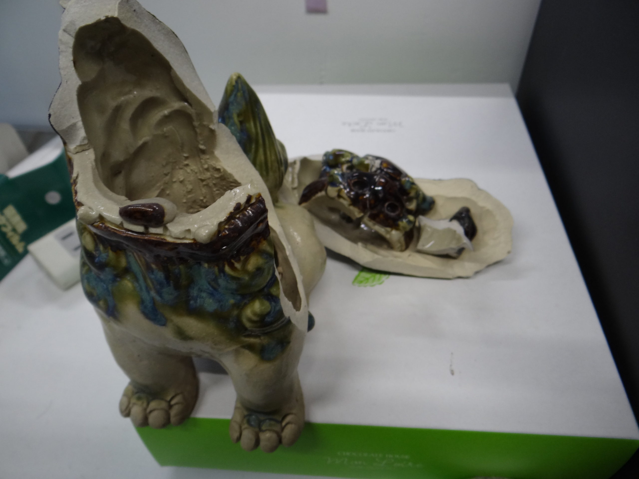 と喜んでいたら、昨晩の強風で店先のシーサーがこの状態になってしまいました。ショック!!