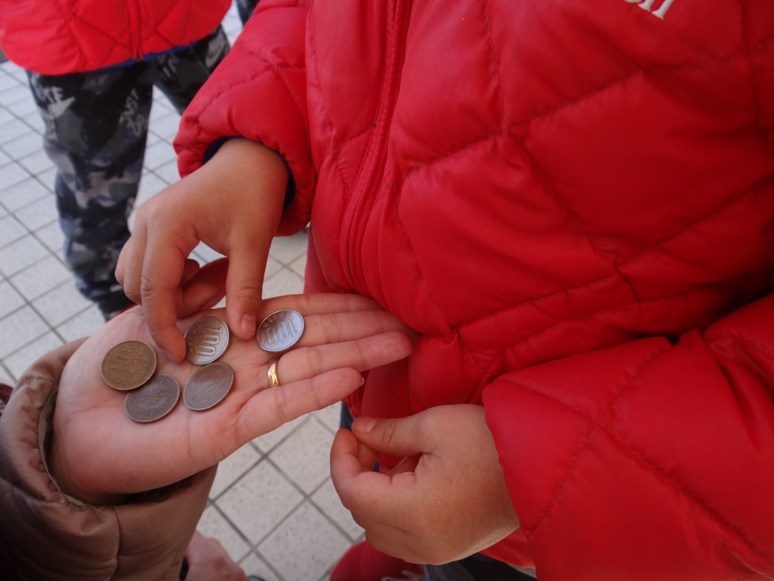 外の公園でアイスクリームを買います。但し、お金のお勉強をしましょう。