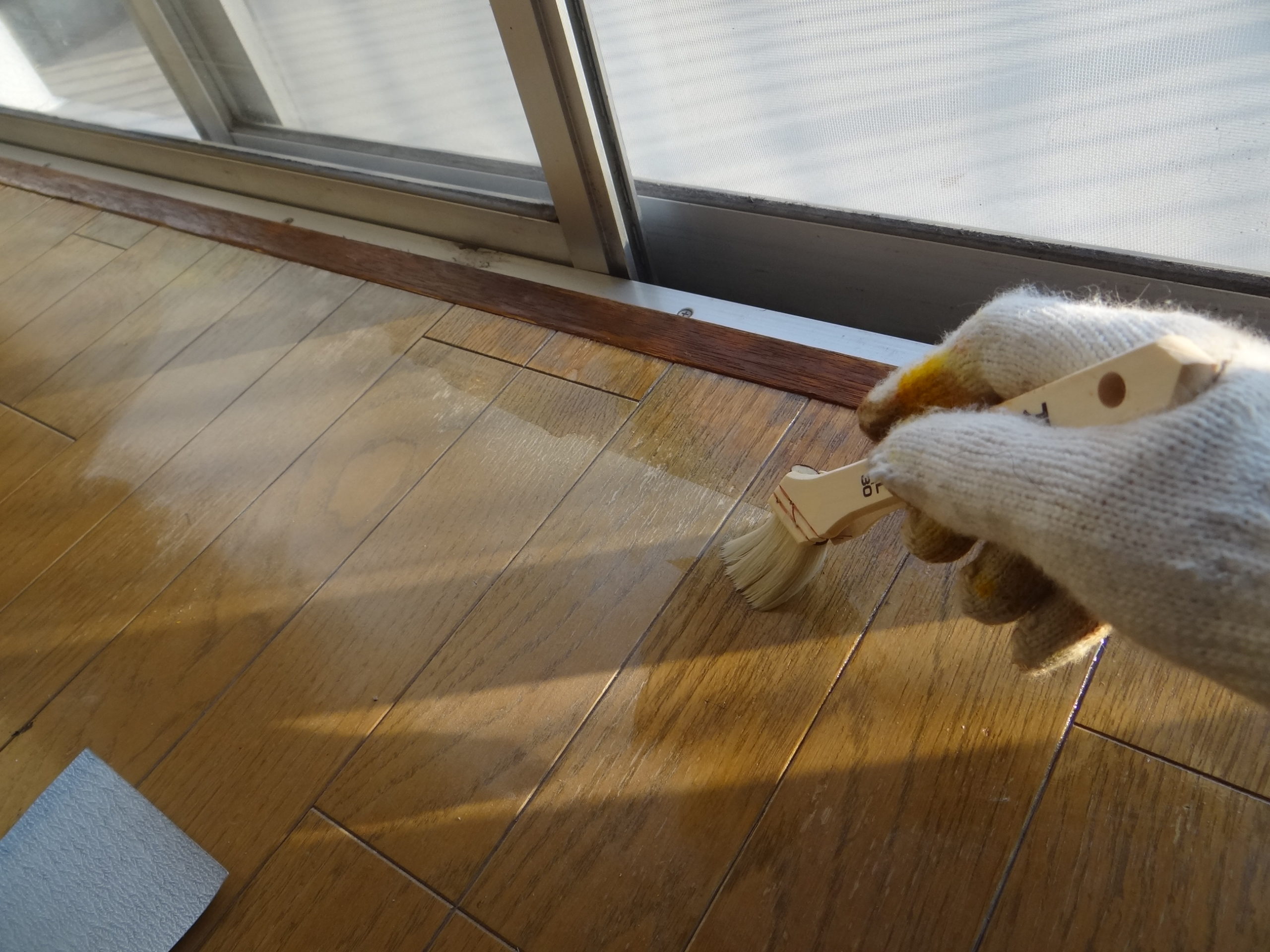 今日は仮設足場の解体を行いました。これで外壁塗装・屋根塗装工事は完了になりました。大変お世話になりました。その後は内装の床です。フロアーのリペアを行っておりました。