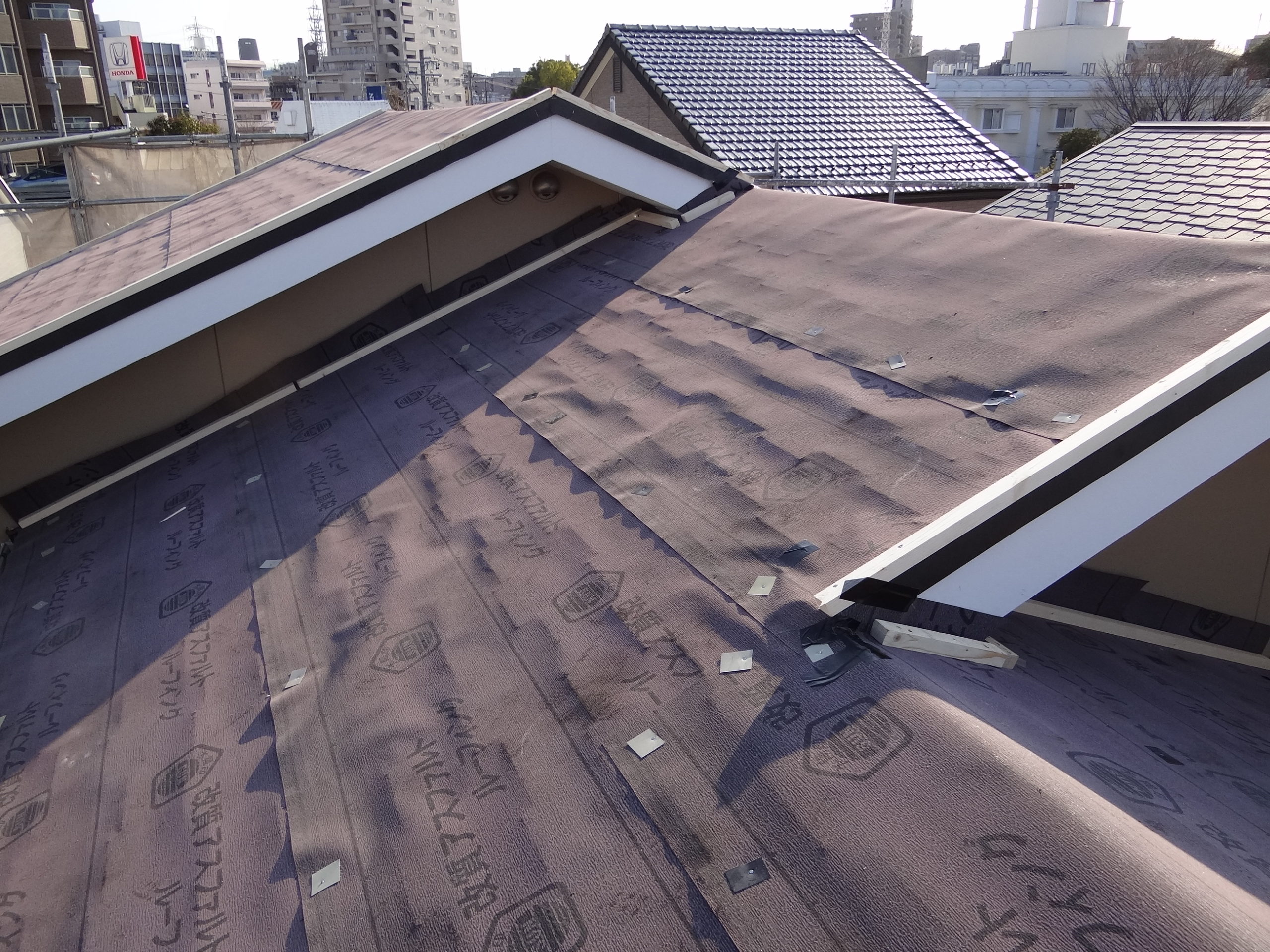 屋根工事。