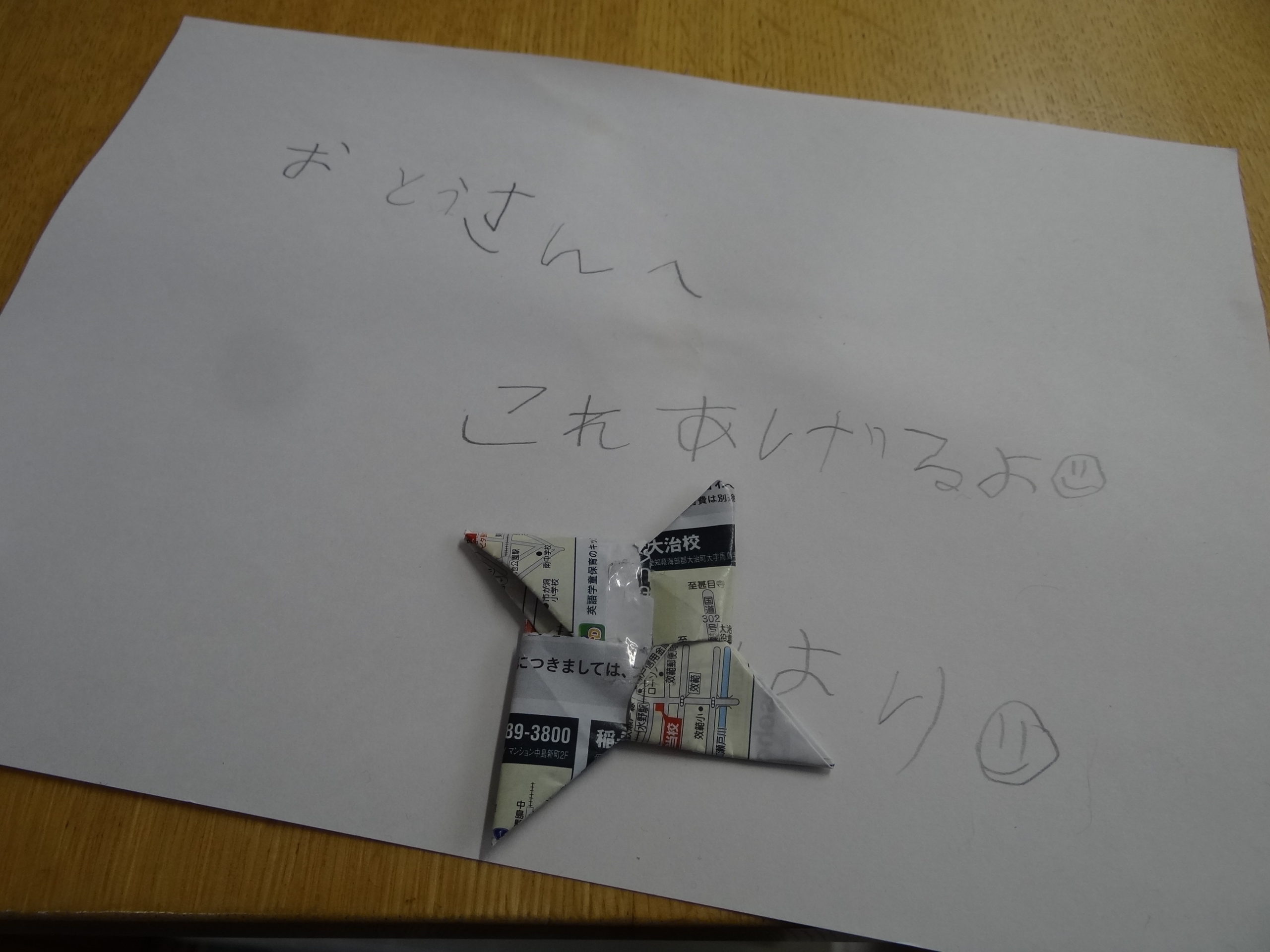 今朝、三男からのプレゼント。ずいぶん字も書けるようになってきたんだな~ありがとう。