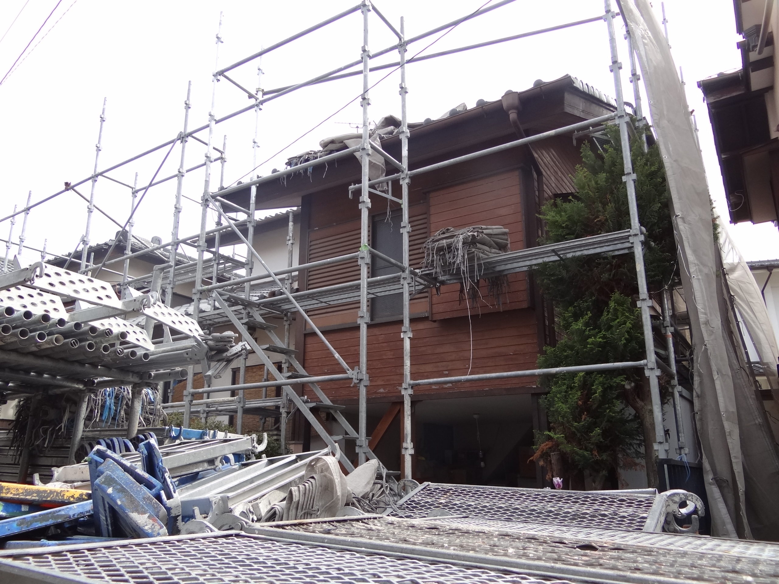 今朝はチビ達のバイクの洗車から。早く学校へ行きなさい。三男にも洗車の邪魔をされます。。。早く保育園へ行きなさい。そんな感じの朝でしたが、今日は仮設足場の設営を行いました。