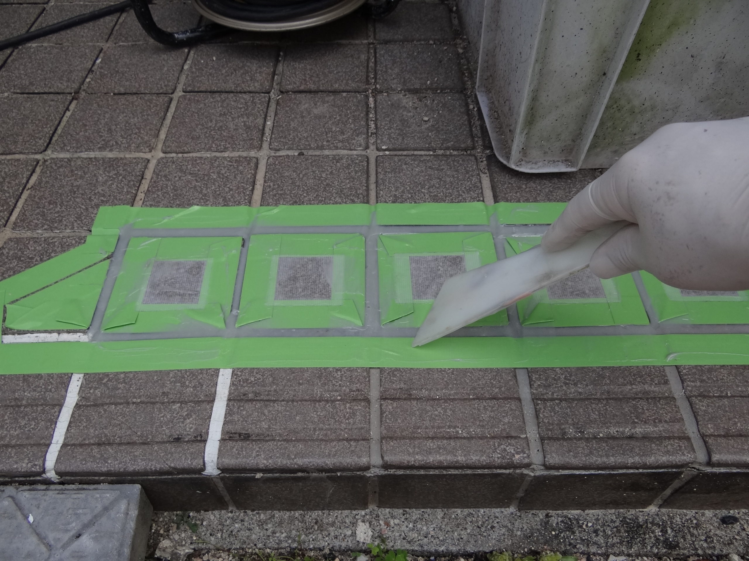 土間のタイルの補修を行いました。ここの所、雨が多くてなかなか乾燥しずらいので表層をヒートガンで強制乾燥です。エポキシ樹脂ボンドを使います。ぬりぬり。はい完了。後は硬化を待つだけね。