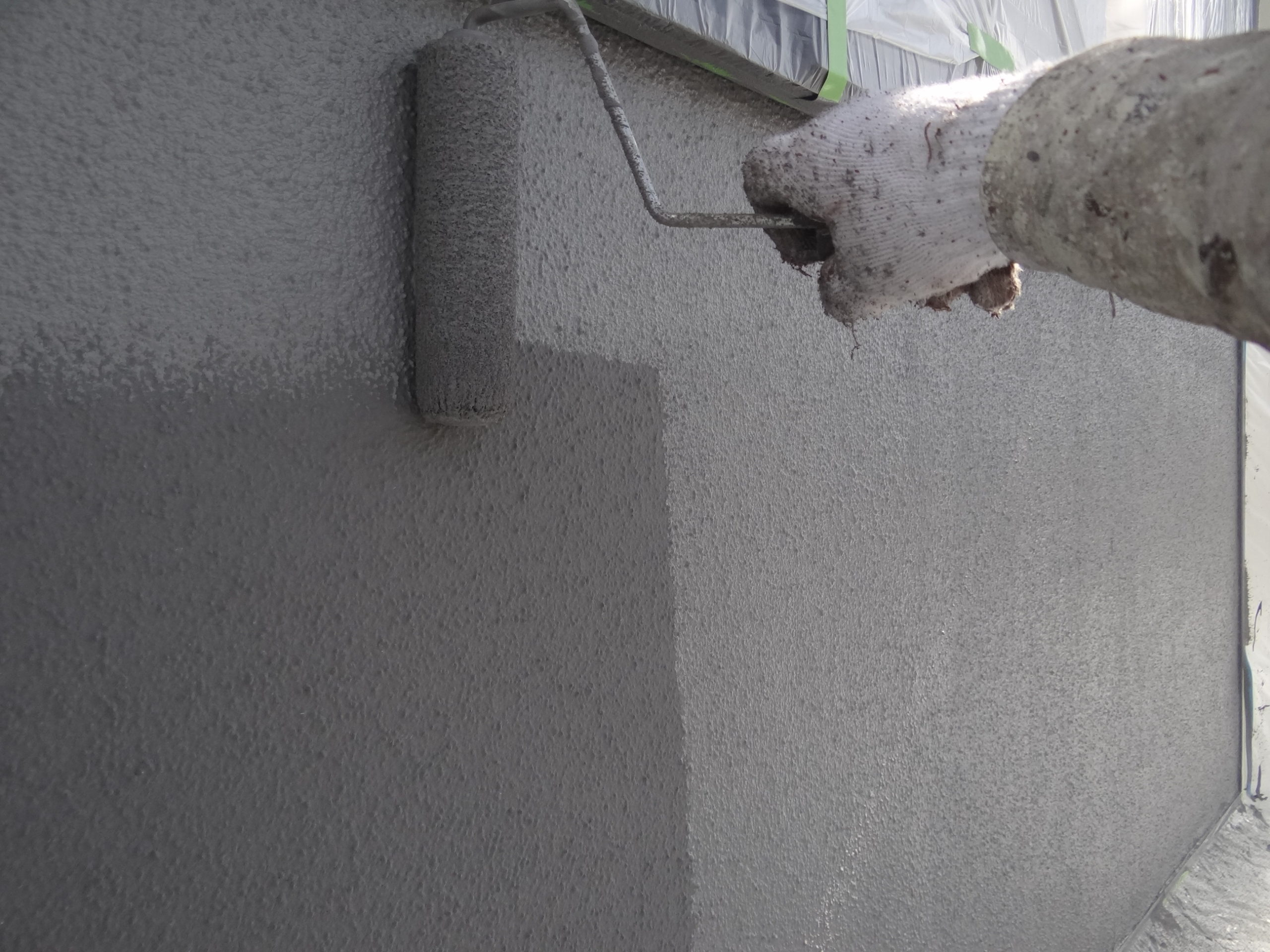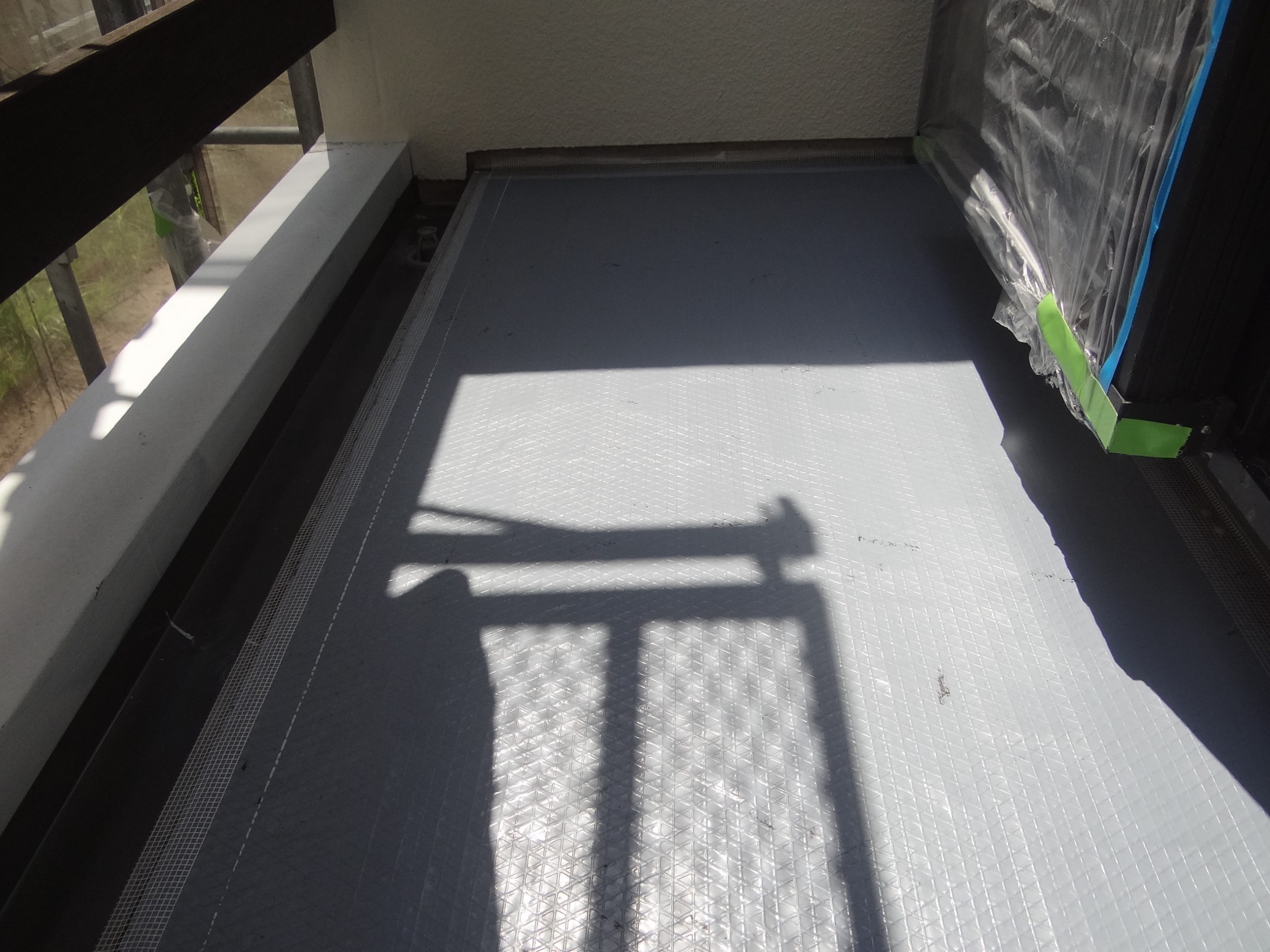 急いで現場へダッシュ!ベランダ防水を進めます。