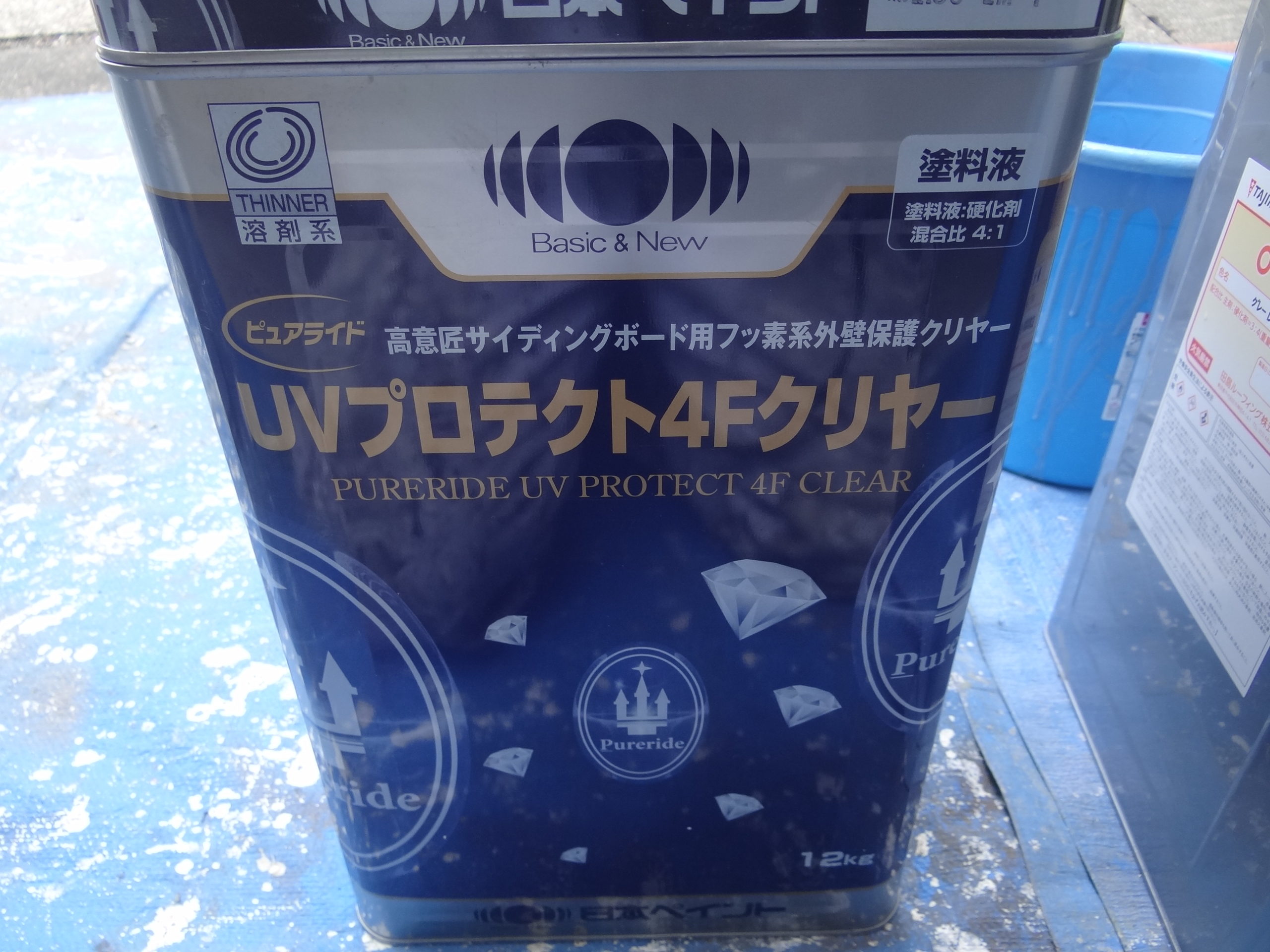 外壁の塗装に使用する材料。フッ素樹脂のクリアーです。