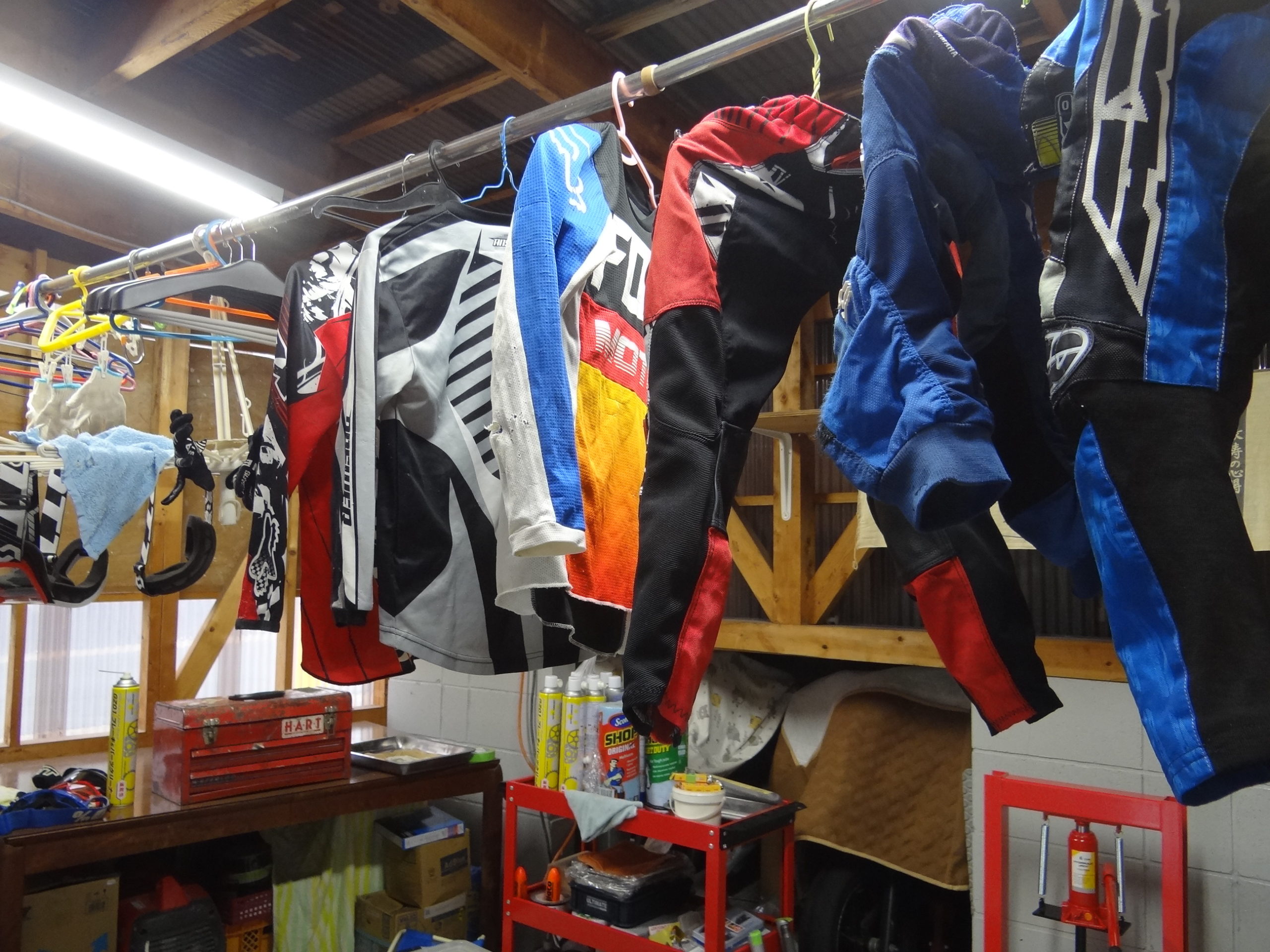 お父さんは洗濯や装備の点検。まーそんな雨の日です。