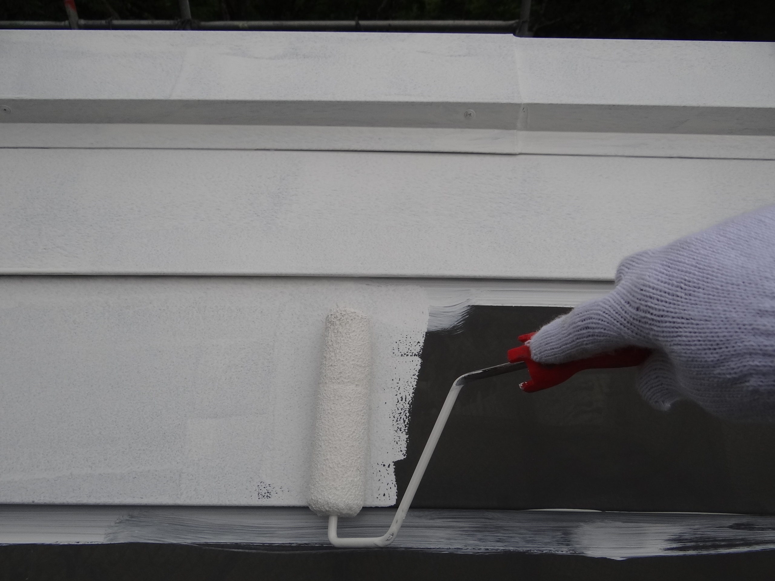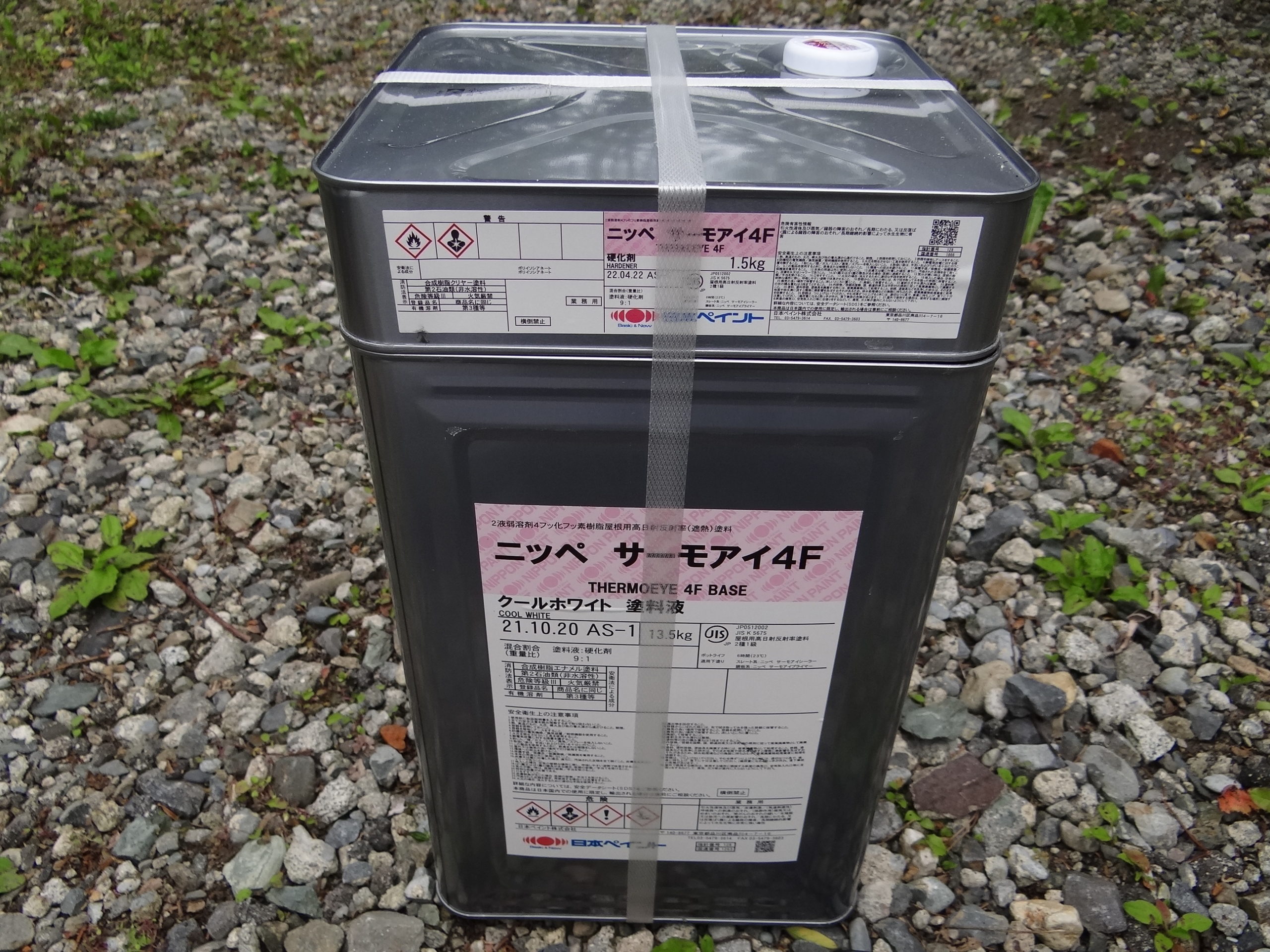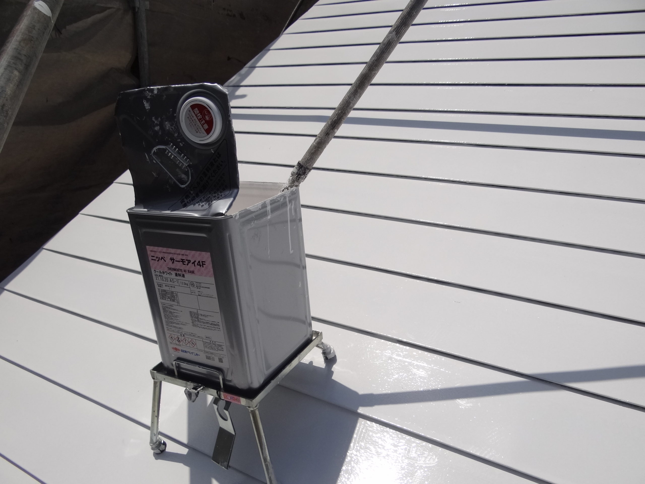 今日は上塗りを行います。遮熱のフッ素樹脂塗料です。
