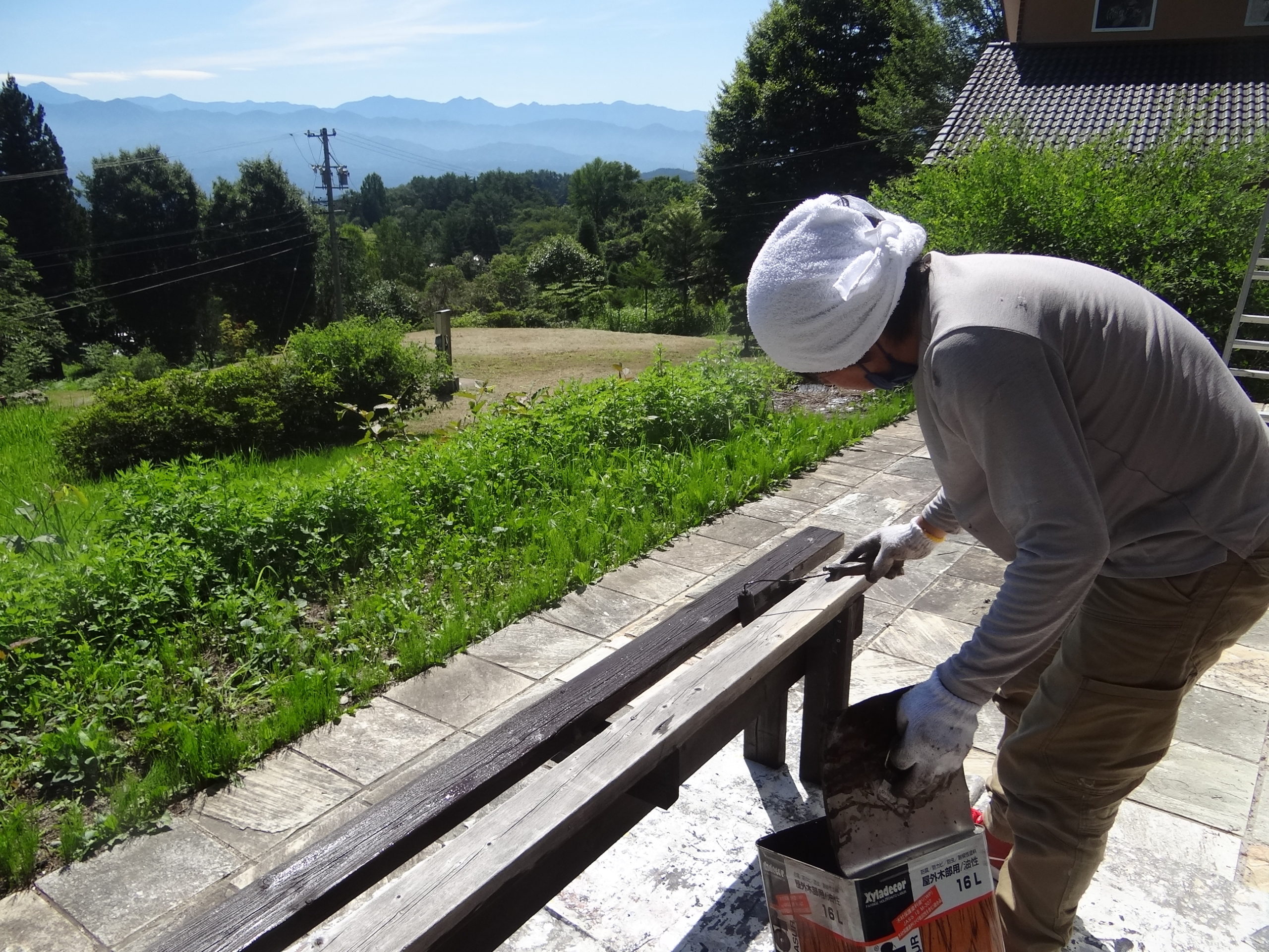 ついでにベンチの塗装も行いました。