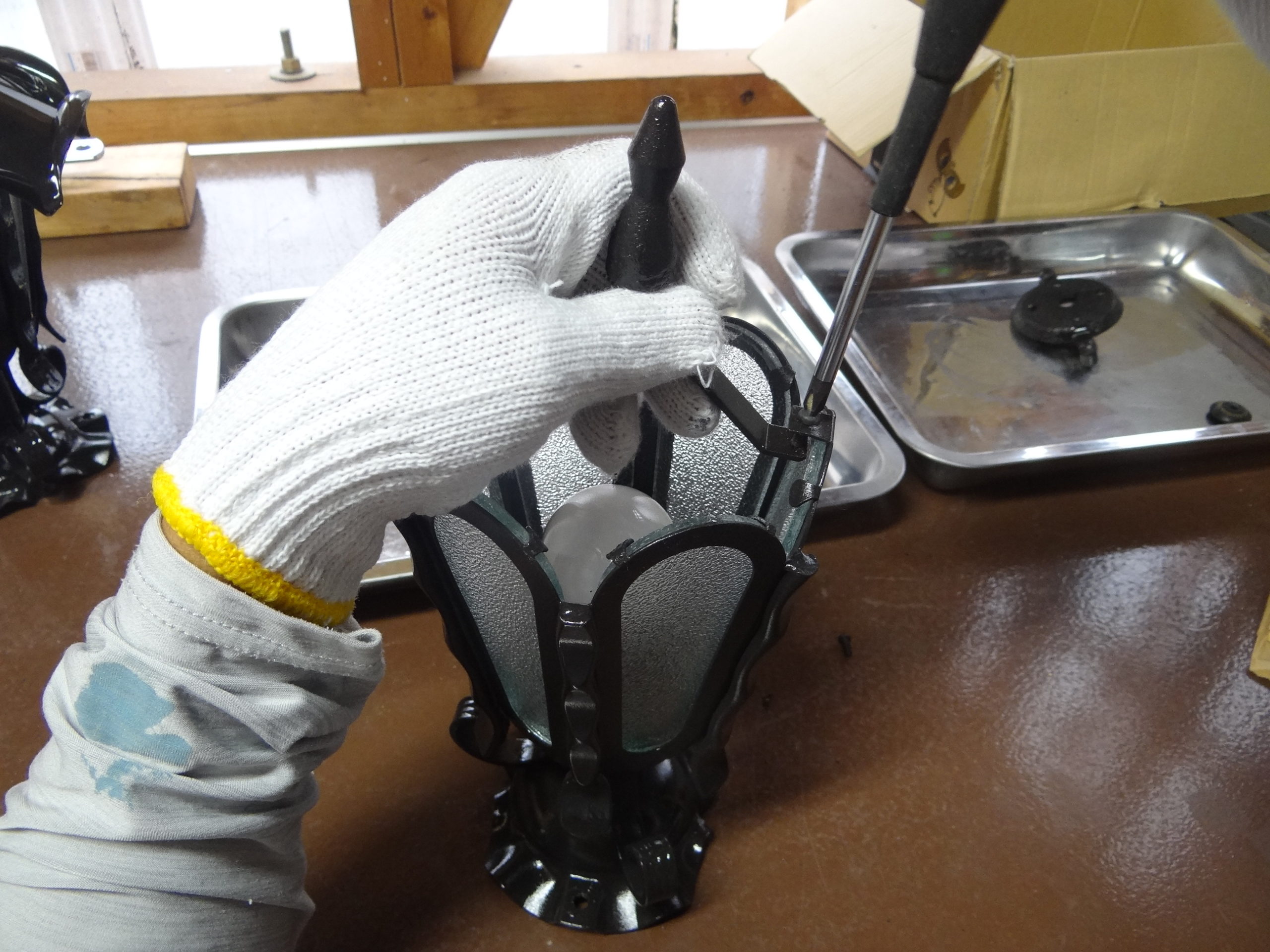帰社後は、門灯の塗装を行いました。乾燥したので組み立てます。