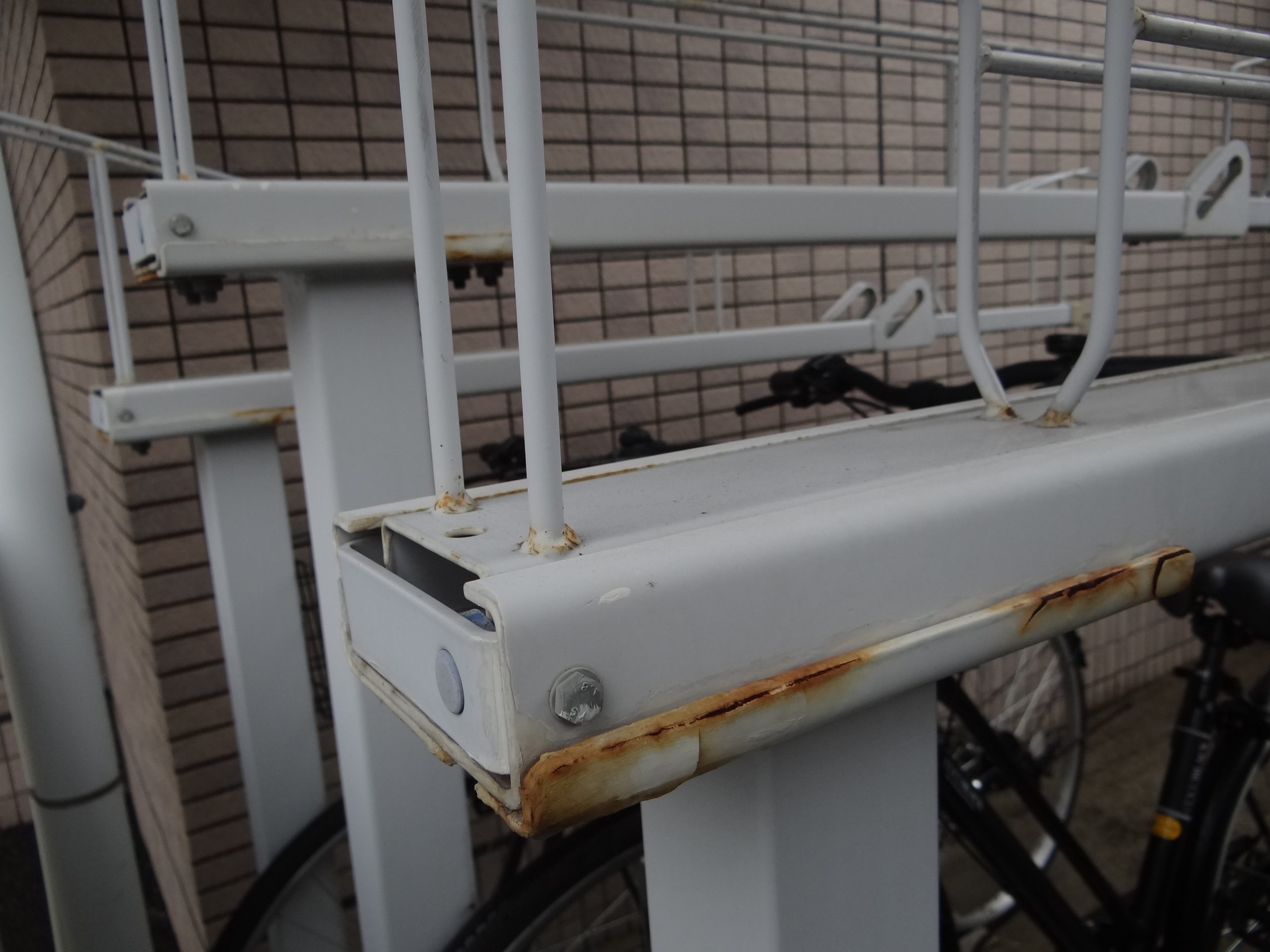 後は駐輪場の鉄部塗装の調査を行っております。