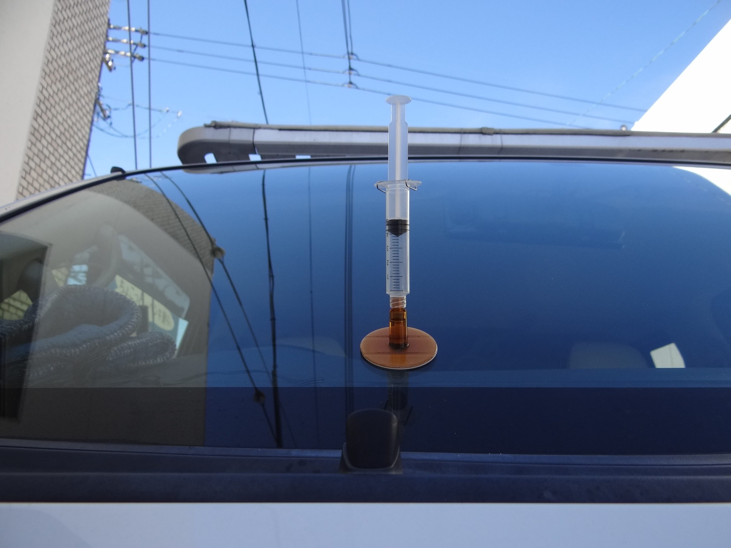 少し早く帰宅。天気もいいし、フロントガラスの飛び石の補修をしています。