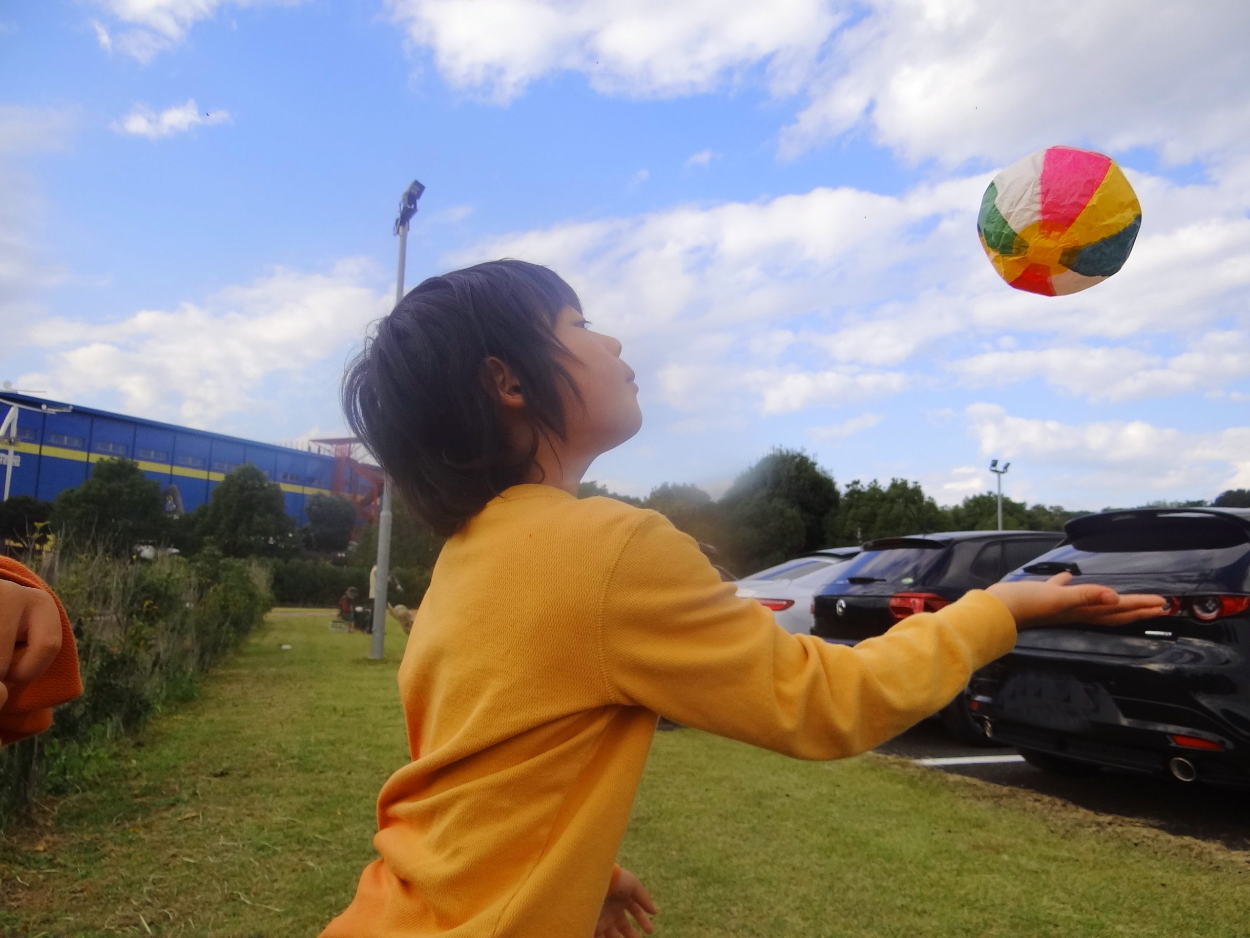 今日のチビ達は振替休日。なので岐阜かかみがはら航空宇宙博物館へ行ってきました。外の公園でサッカーボールで遊んだり、初めての竹とんぼで苦戦中。ヨシ飛んだ!そんな事をしていたら飛んできました。航空祭の予行です。楽しみにしていたので大喜びでした。でも、初めての紙風船も楽しかったらしい。