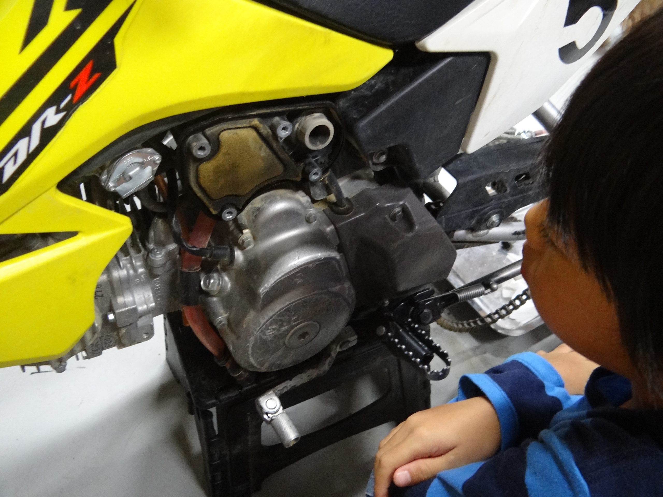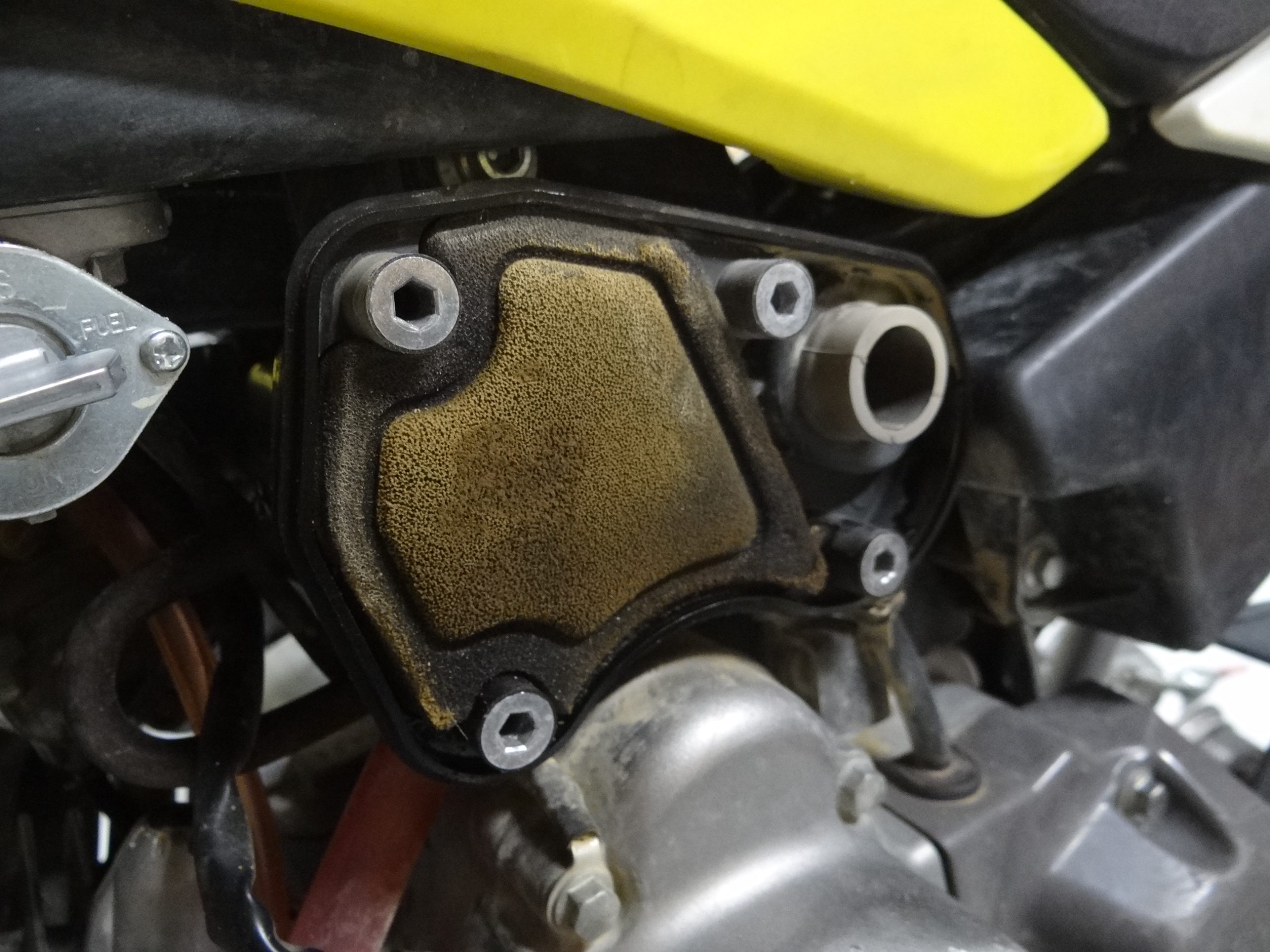 帰宅後はバイクの整備です。君が頑張って走っているから、エアクリーナーが汚れるんだよ。