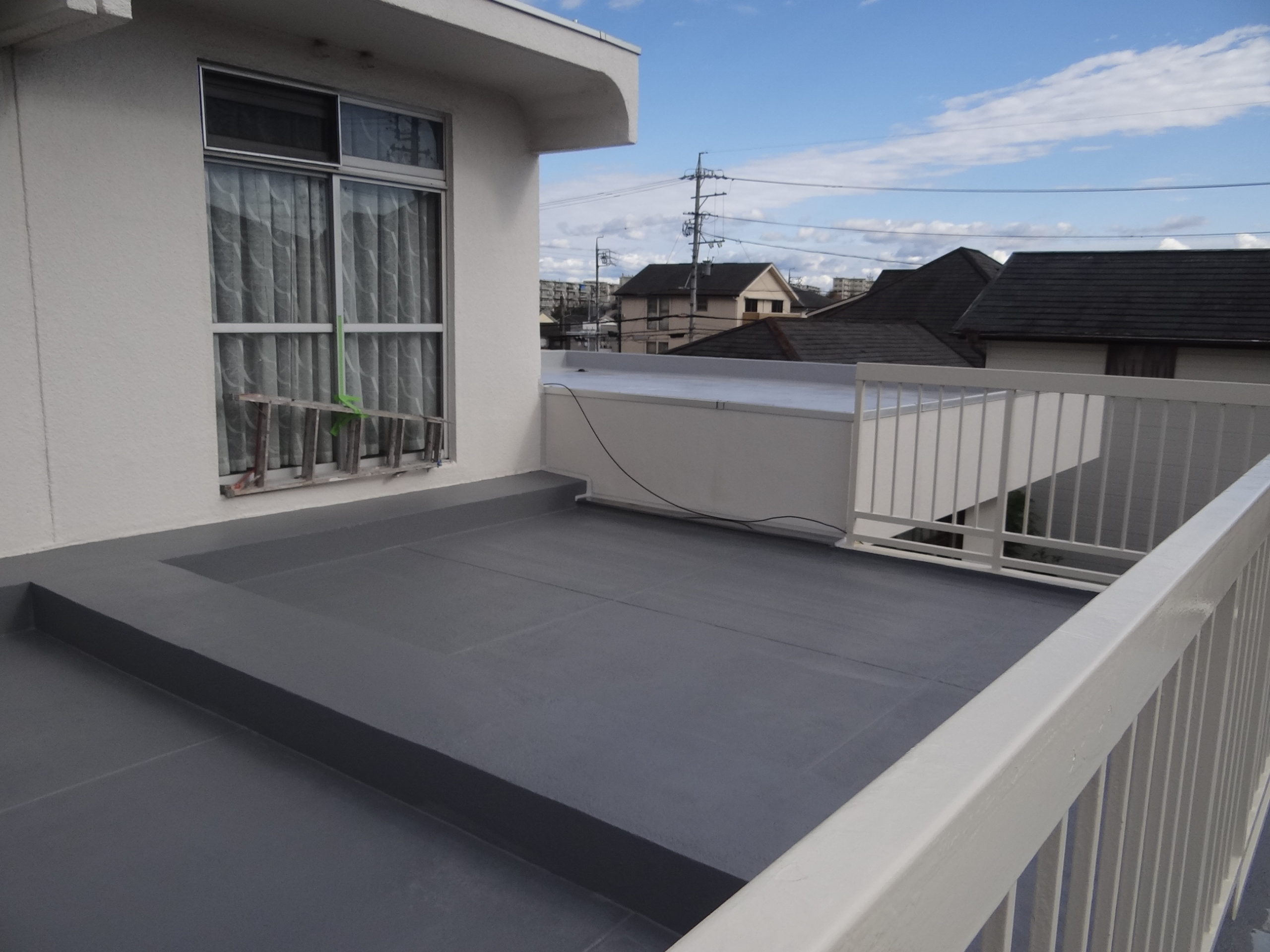 屋上防水工事もトップコートを塗って、