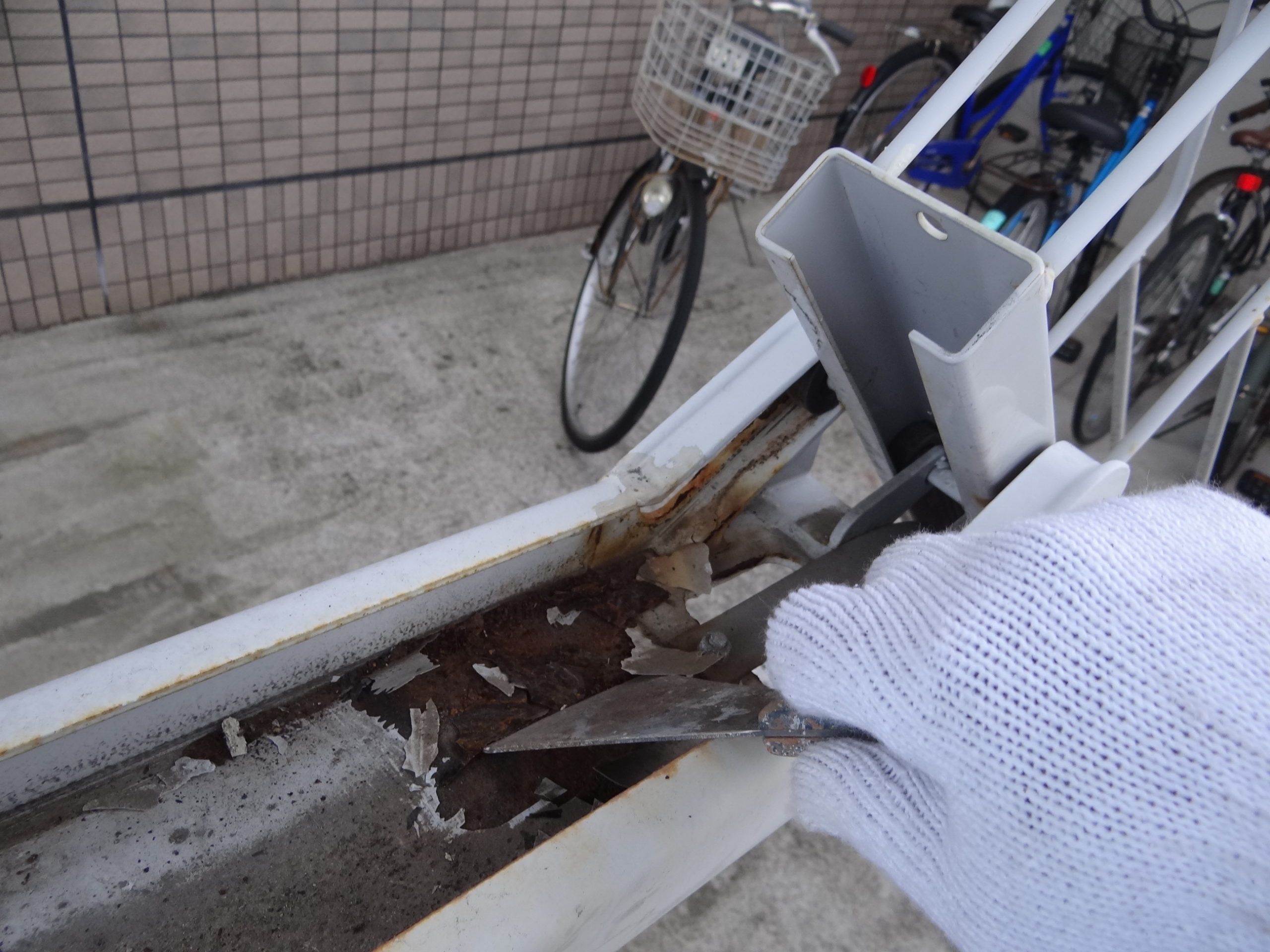 今日は駐輪場の鉄部塗装を行いました。