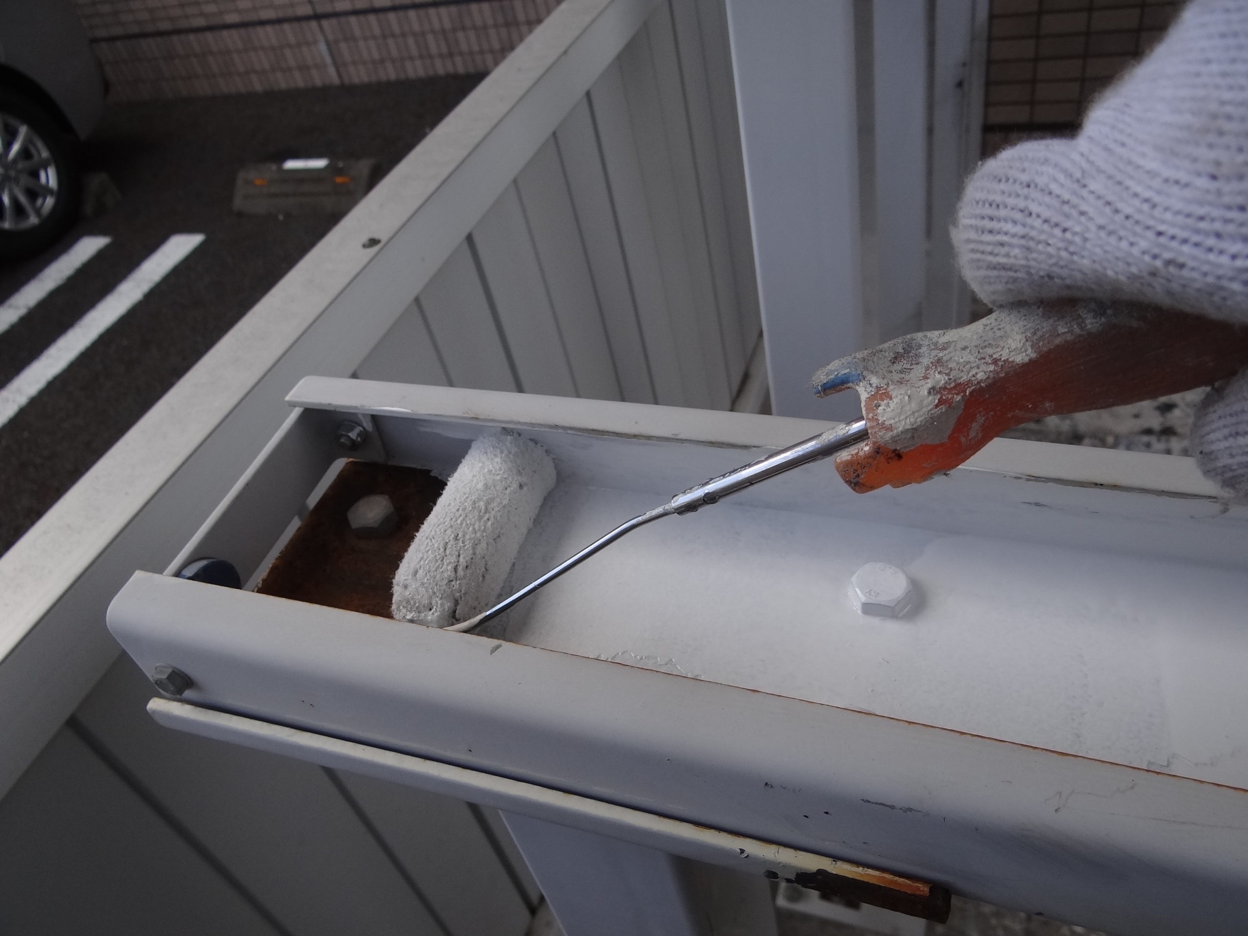 駐輪場の鉄部塗装。