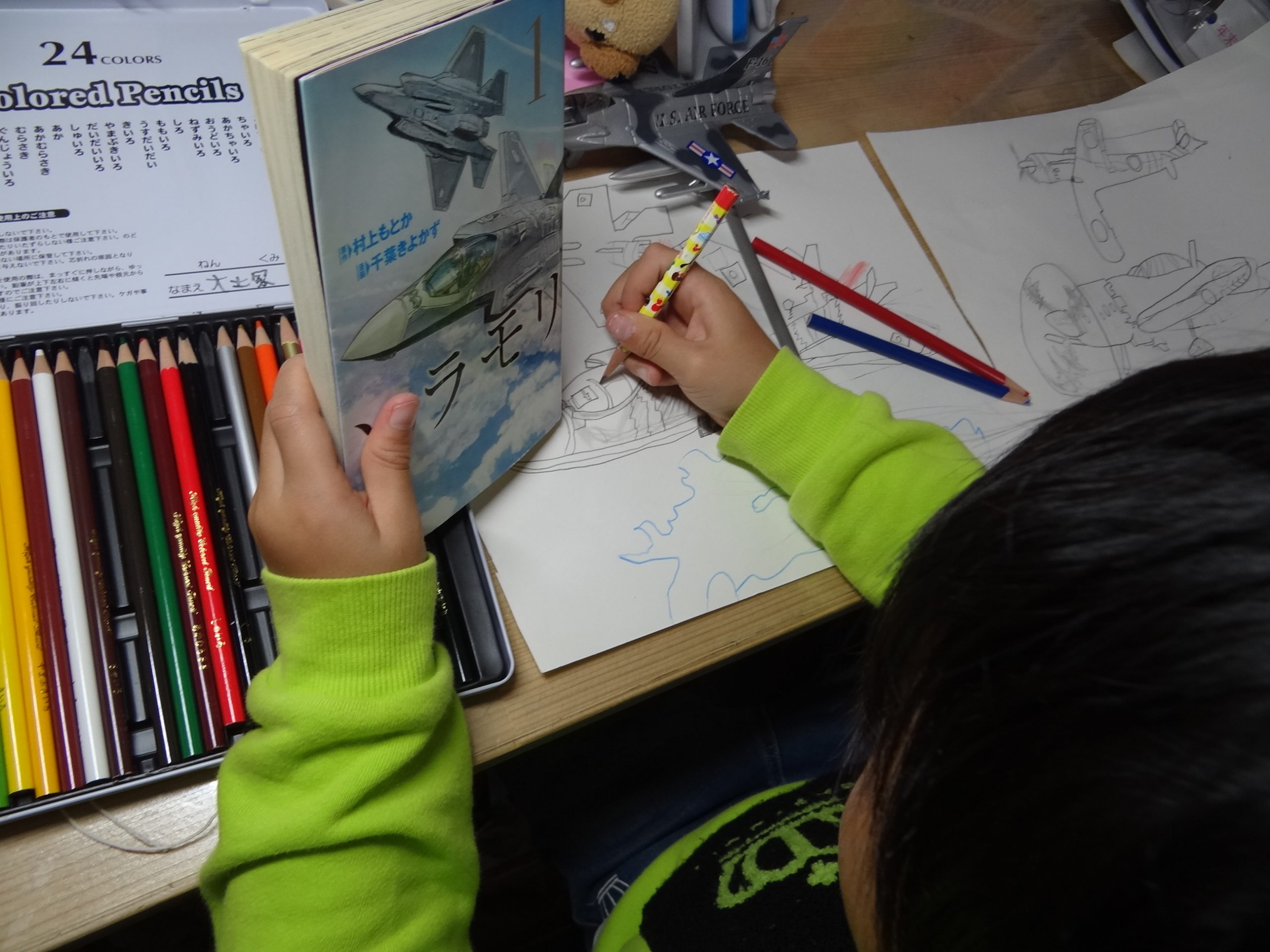 今日から三男の公文は割り算に入りました。お兄ちゃんもお母さんも優しく教えてくれるので頑張ってね!公文を済ませた次男はヒコーキの絵を描いてます。最近、よく描いてますね。そんな冬休みです。