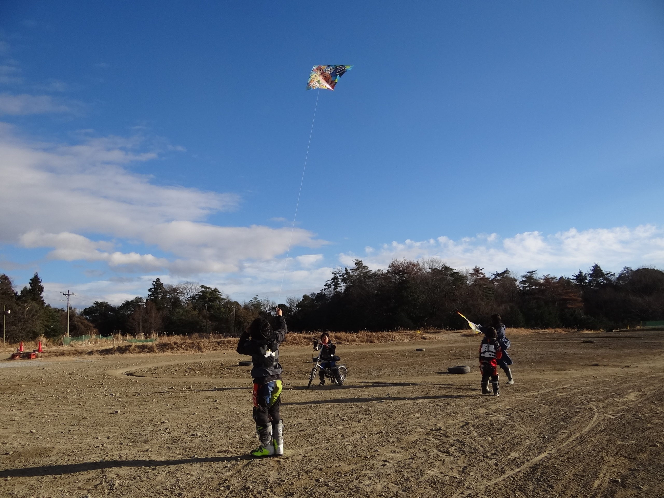 休憩中。お友達と凧あげして遊びました。